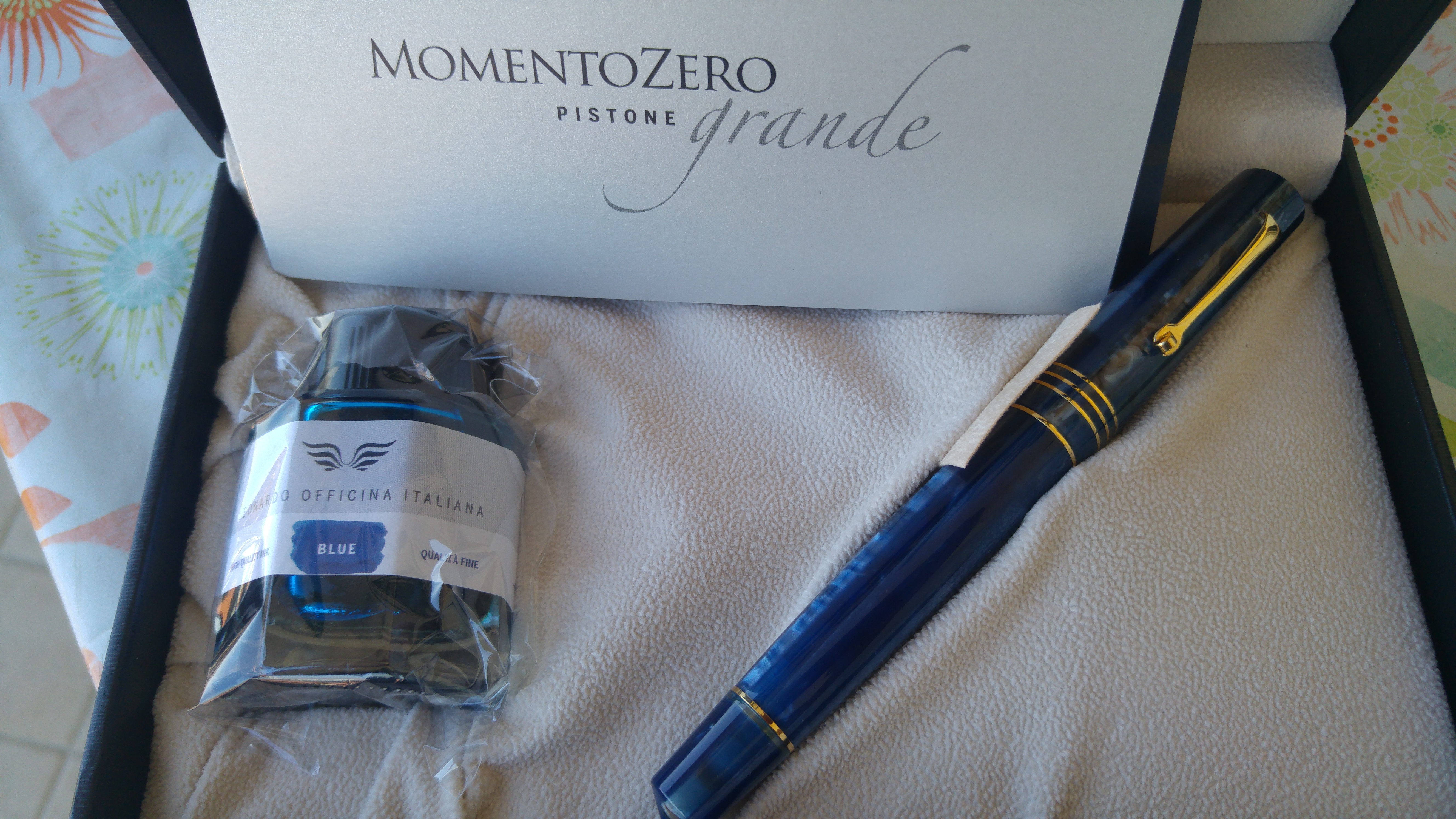 Stilograph Corsani, il noto negozio di Roma, ha fatto produrre a Leonardo una serie limitata della Momento Zero con la stessa resina, chiamandola Blu Corsani.