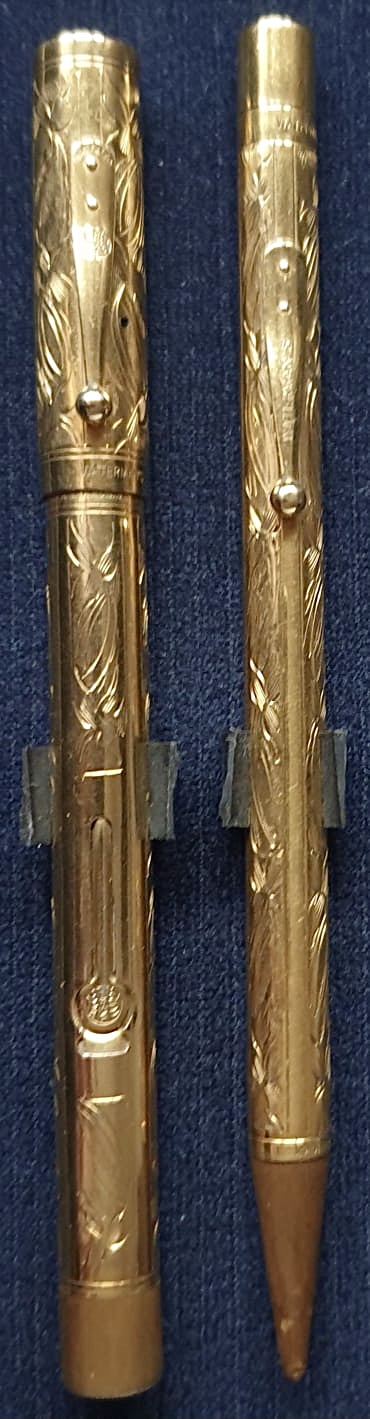 Waterman's 552 1/2 - Made in New York. Particolari curiosi: un set uguale, in oro massiccio, alla fine degli anni ‘20, costava 120$!!! Uno identico fu inventariato, nel ‘38 nel penitenziario di Alcatraz, tra gli effetti personali di Al Capone che lì vi passò due anni.
