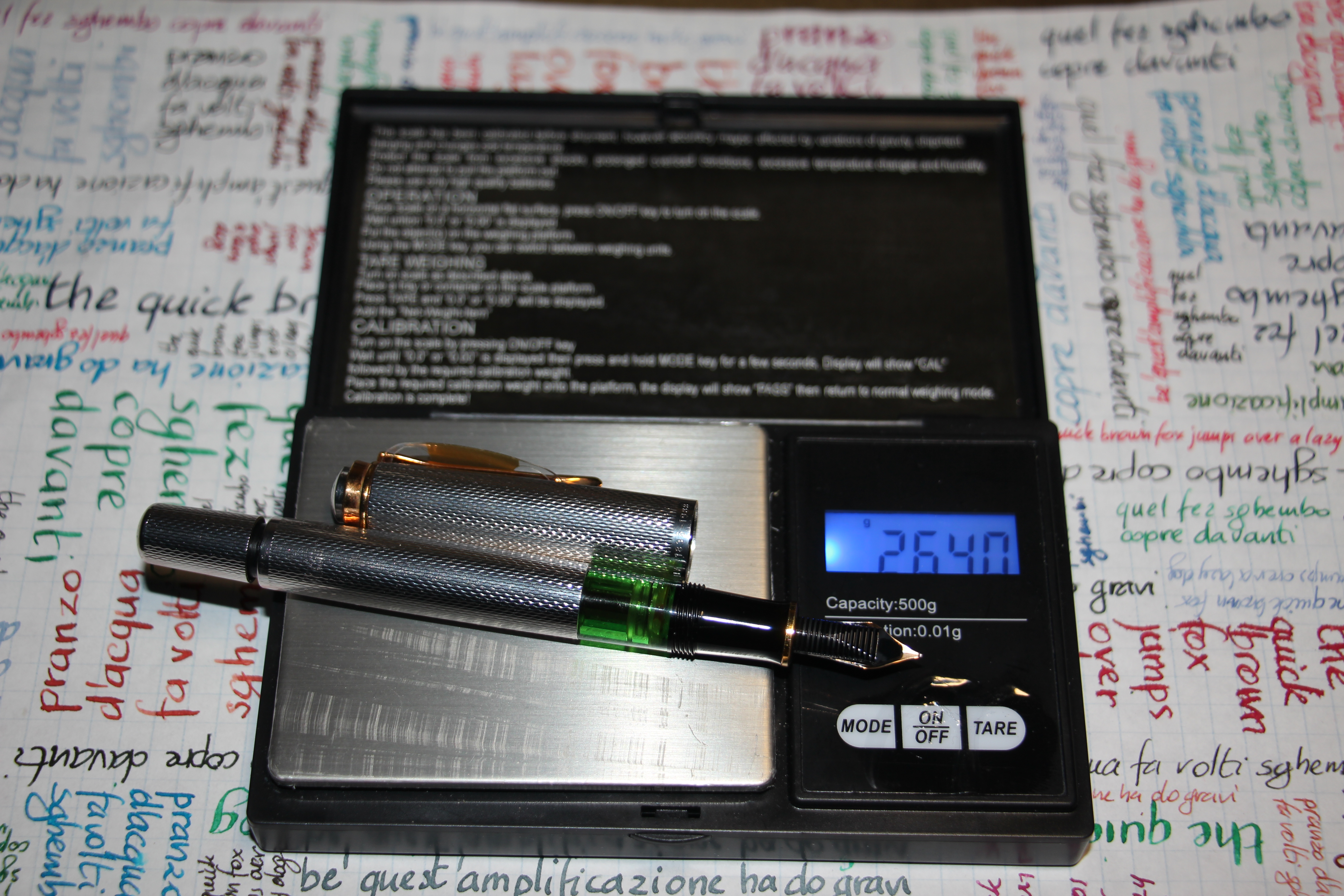 In questo caso il risultato potrebbe anche considerarsi abbastanza sorprendente, dato che una capacità identica non è quello che mediamente ci si aspetta da una penna che senz'altro è molto più imponente delle sue "sorelle minori". Ma non ho nessuna remora a dire che non sono minimamente sorpreso, e che non mi aspettavo differenze significative (anche in questo più che poco significative sono proprio assenti). Mi resta la curiosità di vedere cosa si otterrebbe con una M1000, se qualcuno ne ha una da prestarmi per le misure ...