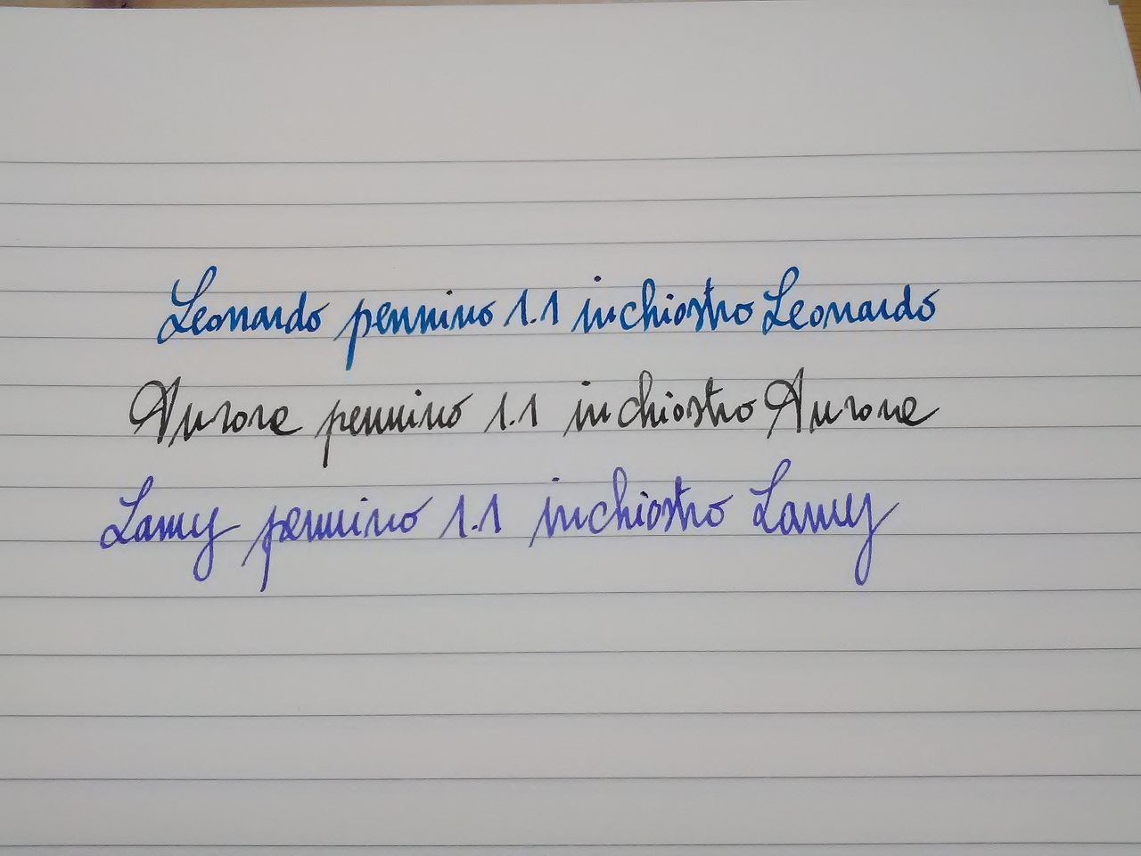 Ho caricato le penne con lo stesso inchiostro e un po' di differenza si nota fra i tre pennini. Il tratto della 5000 è più o meno uguale a quello dell'Aurora, il Lamy è più sottile. Quello che cambia è il fruscio o il "feedback" come lo chiama qualcuno, più marcato quello dell'Aurora. Il Lamy rimane indietro sulla scorrevolezza, gli altri due si equivalgono. Importante però è il fatto che il pennino Jowo costa più o meno 25 euro, l'altro dieci volte di più, questo è oggetto di meditazione e non poca. Tutto sommato propendo per il pennino della 5000 anche se ha il tratto un po' "grassottello" per i miei gusti. Spero di esserti stato utile in qualche modo.