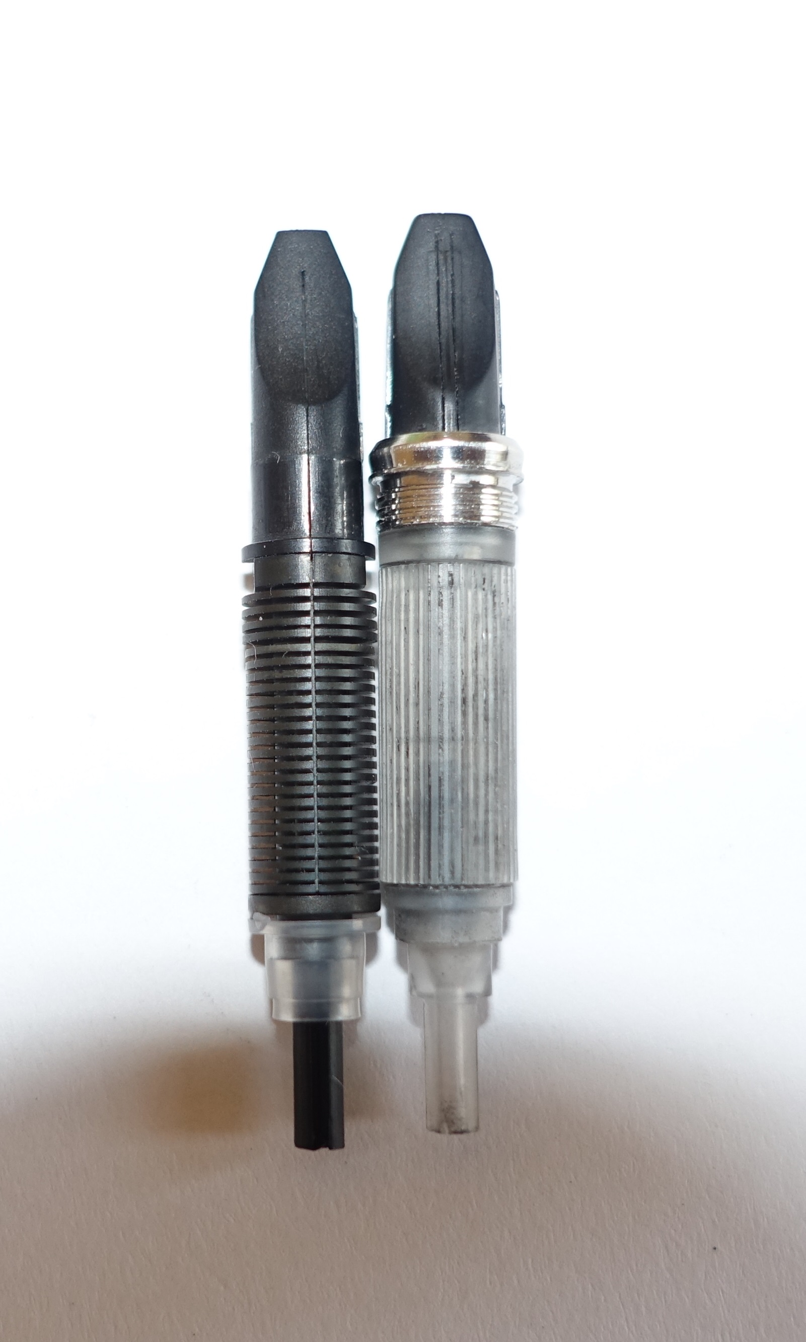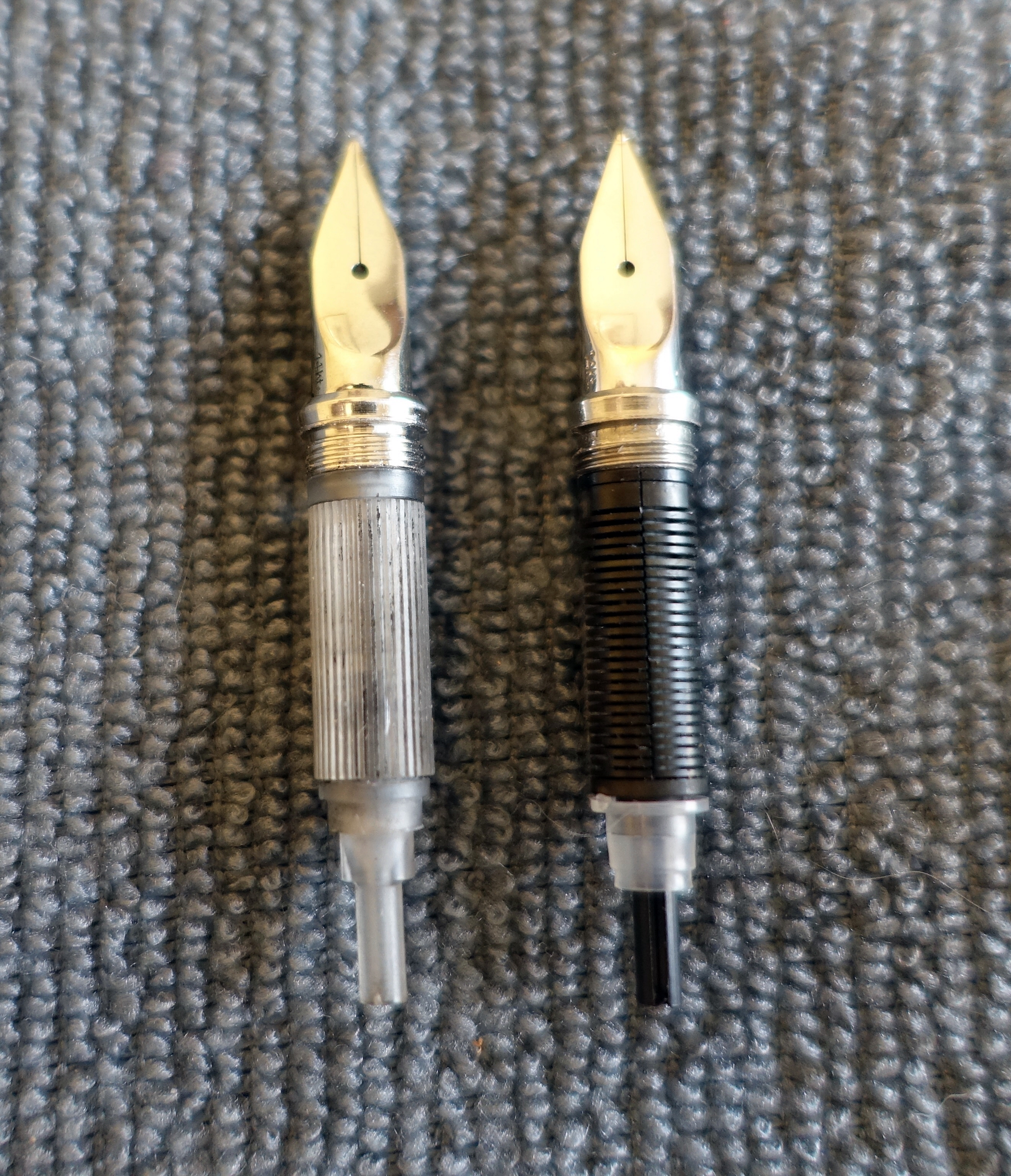 Ho sempre notato questa differenza ma non avevo mai approfondito il perchè della differente costruzione, basta osservare attentamente i canali di trasporto dell'inchiostro per capire che è collegata alla misura del pennino, quindi attenti a cambiare la misura del pennino, se ci sono problemi di flusso, l'alimentatore potrebbe essere una causa, ma la mia potrebbe anche essere solo un errata considerazione.