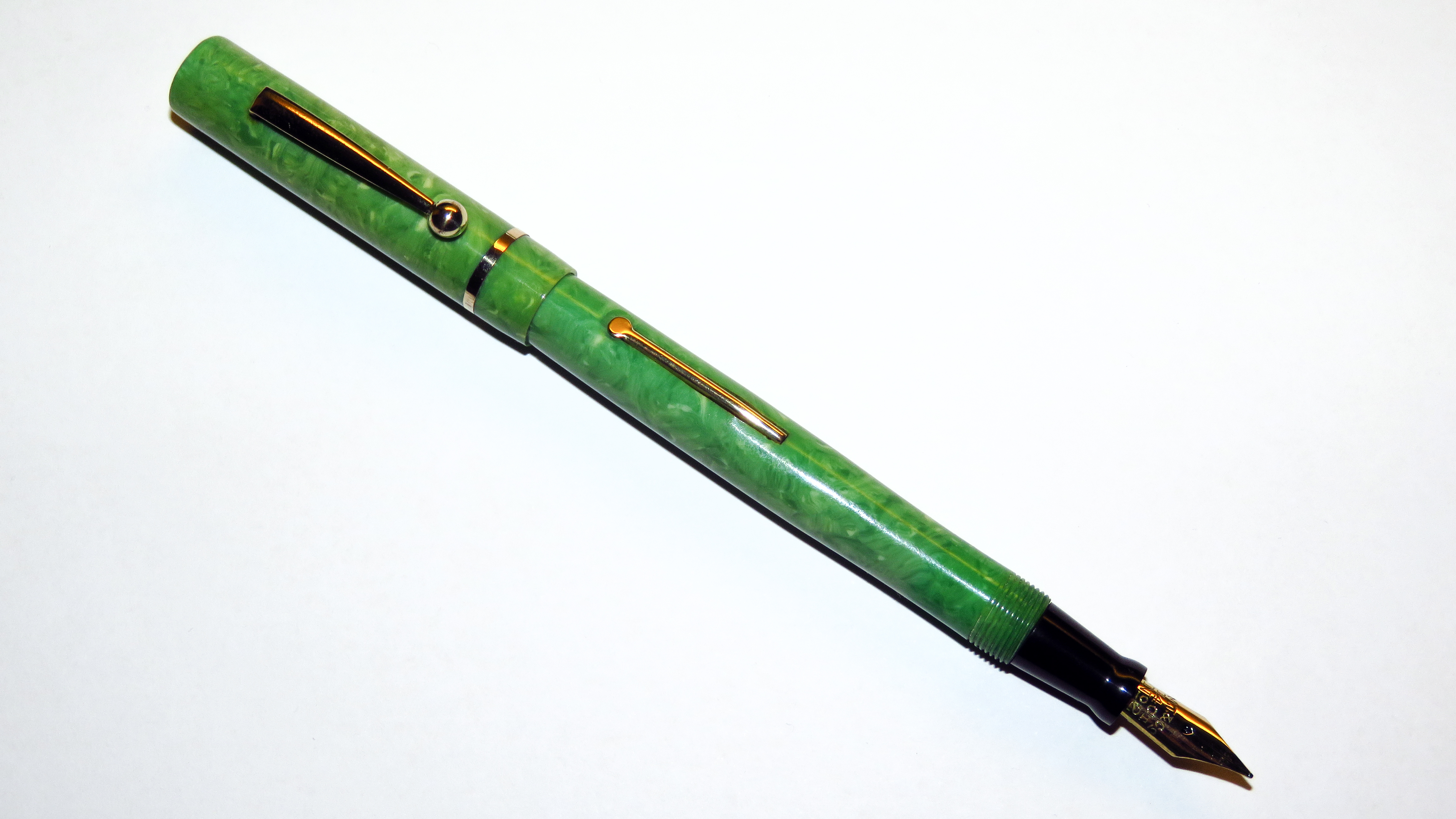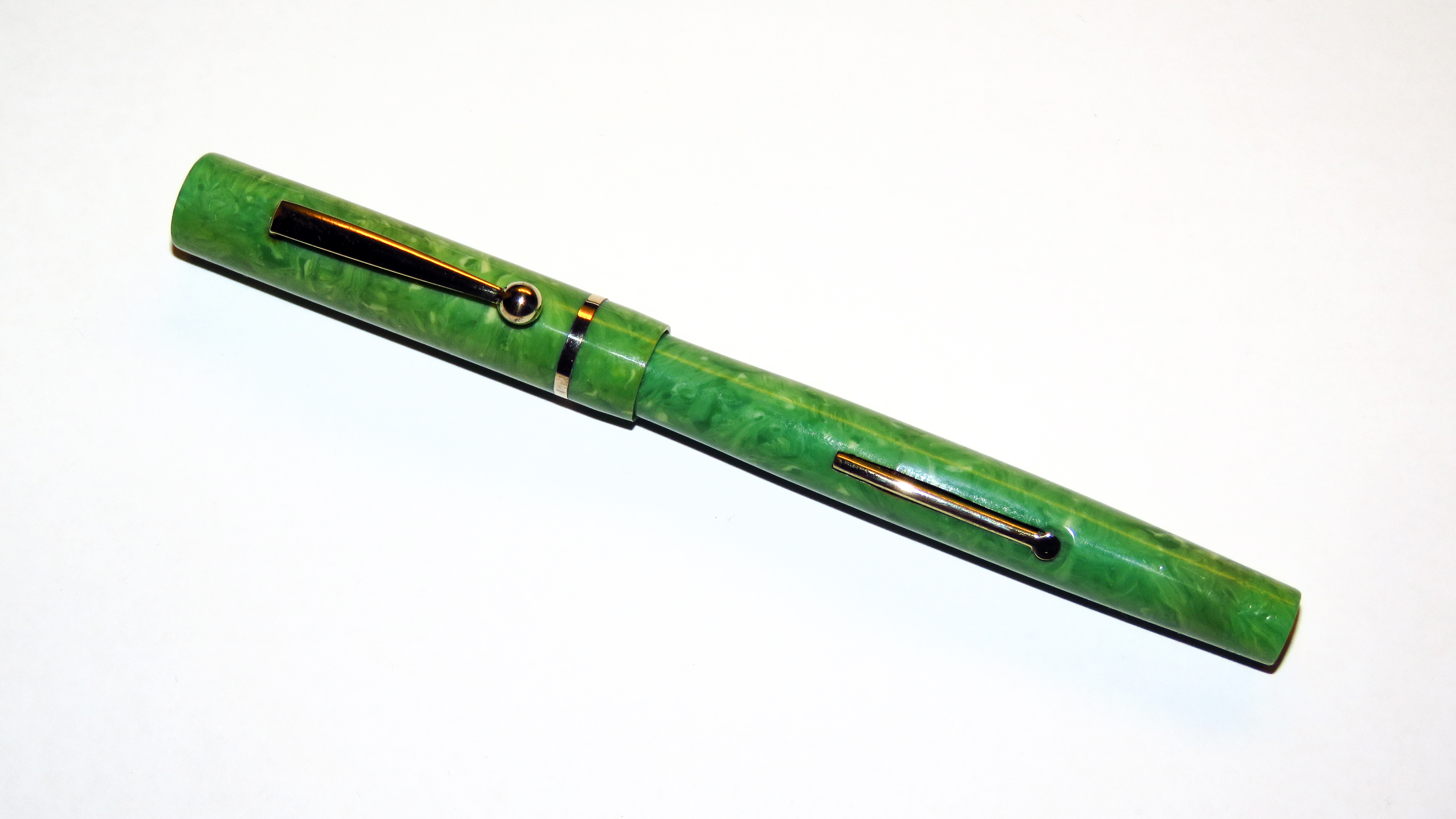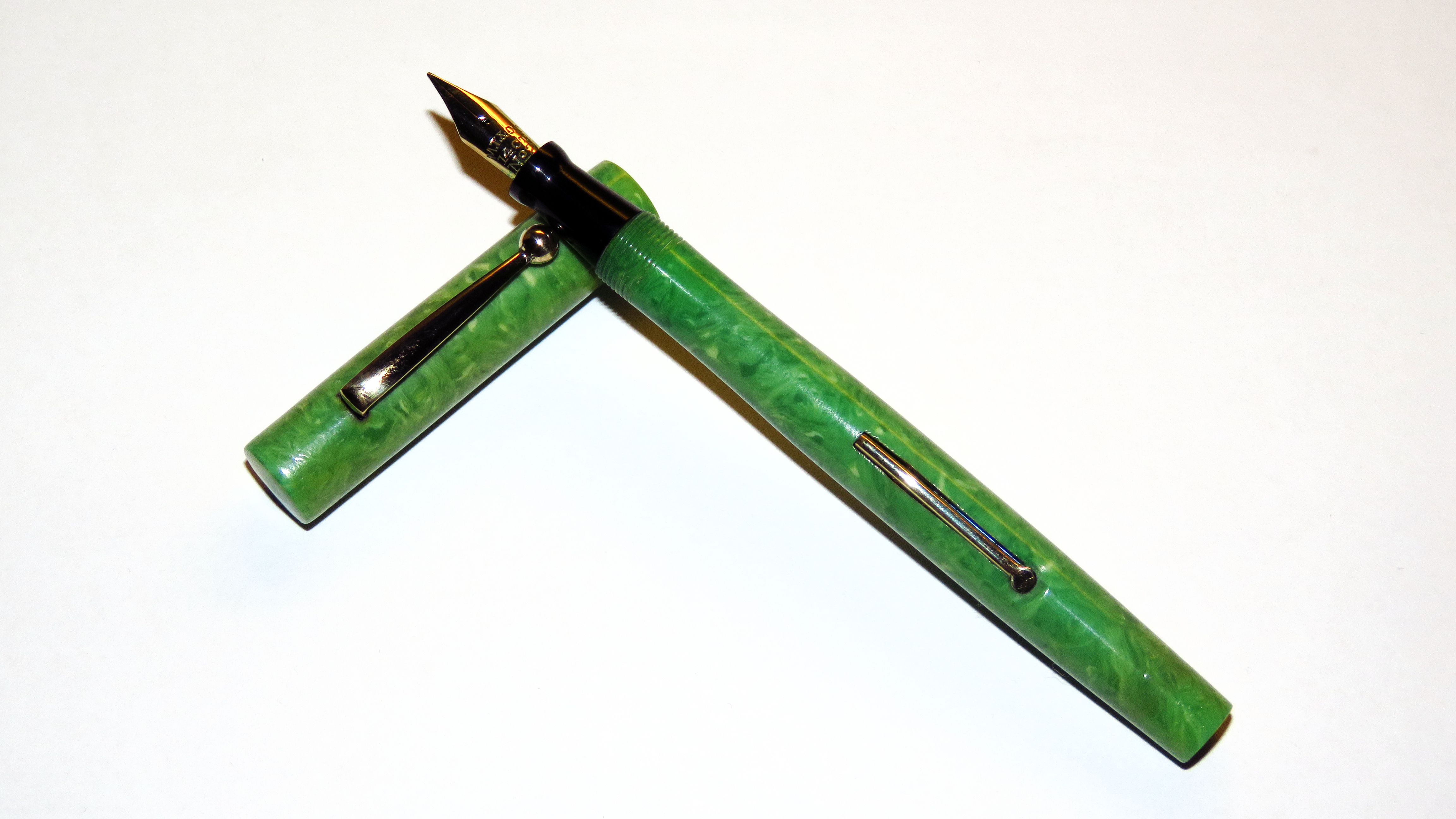 Riguardo alle celluloidi verde giada senz'altro ne esistono diverse. Ho ho qualche Wahl-Eversharp e nessuna arriva ai livelli di imbruttimento di quelle Parker, e stanno anche meglio di quelle della Sheaffer. Lo stesso l'ho riscontrato nelle Patrician (quelle viste in giro, la Jade Green è poco comune nelle Waterman, ma su quel modello c'era) che in genere anch'esse sono meno degradate. E' senz'altro possibile che provengano da produttori che usavano metodi di lavorazione diversi, ma vista la preponderante significanza statistica del campione (nessuna) restiamo nel mondo delle impressioni...