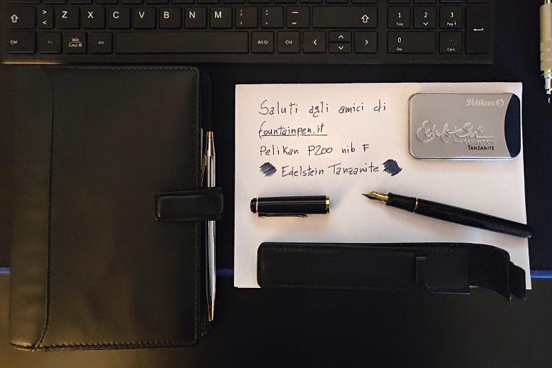 Sono in attesa che arrivi un ordine effettuato ieri di una Pelikan P200 F nib presa nuova ad un prezzacciaccio, con anche due confezioni di ricariche ad inchiostro Edelstein nei colori Onyx e Tanzanite. Ah e ovviamente un astuccio da taschino portapenne in pelle.