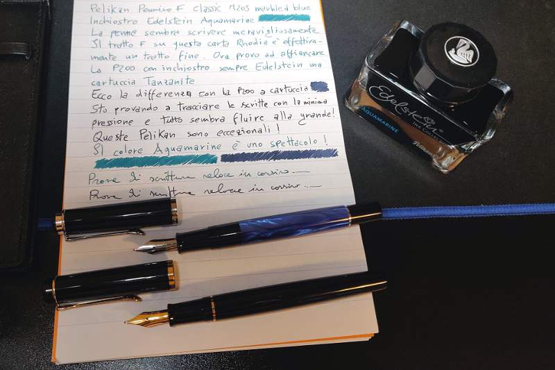 Vi aggiorno qui per non aprire altre discussioni inutilmente; mi faceva comunque molto piacere rendervi partecipi della mia gioia nell'affiancare alla P200 una bellissima e "blue-marbleissima" Pelikan Classic M205! Caricata oltretutto con un altrettanto nuovissimo arrivato Edelstein Aquamarine.