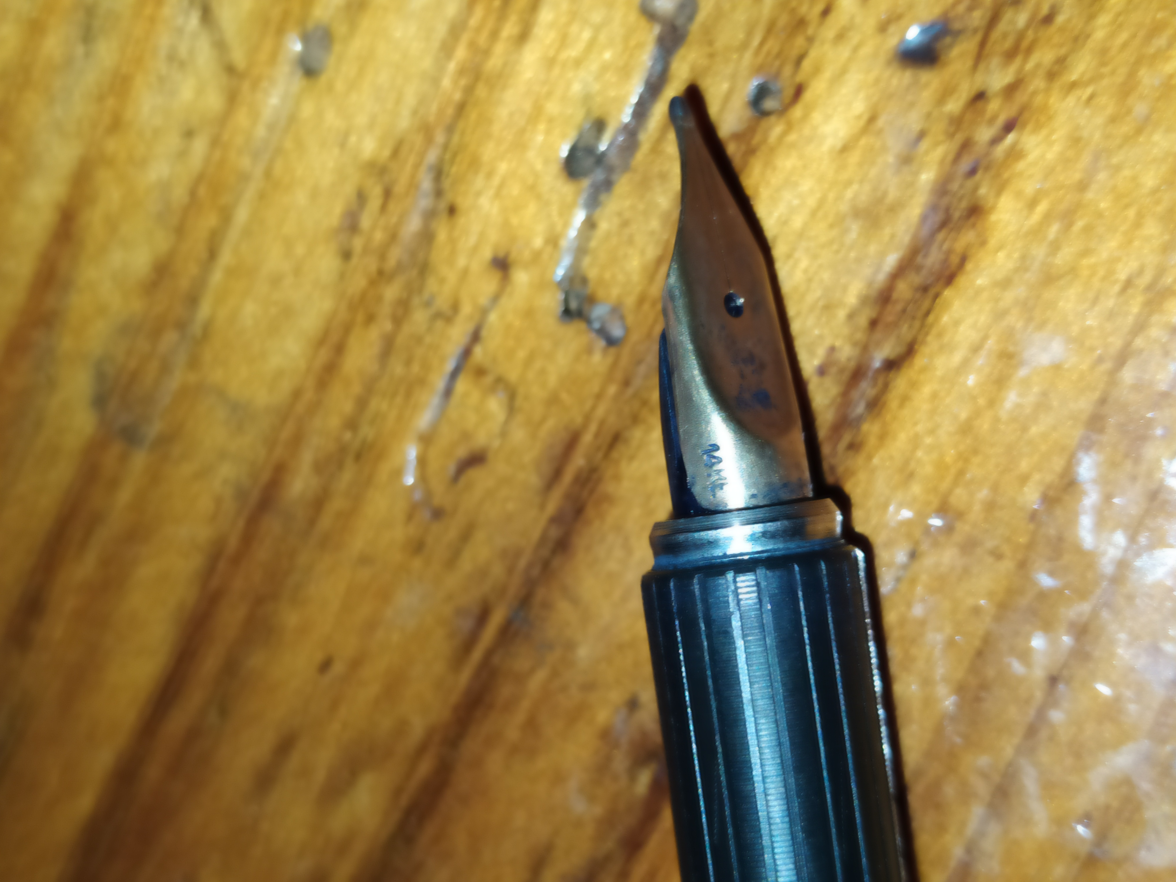 Avrei bisogno di una mano a identificare questa stilo, so solo che il pennino è in oro 14k e che è stata acquistata come regalo da mia madre per mio padre a Parigi. Sul grip è presente un codice.