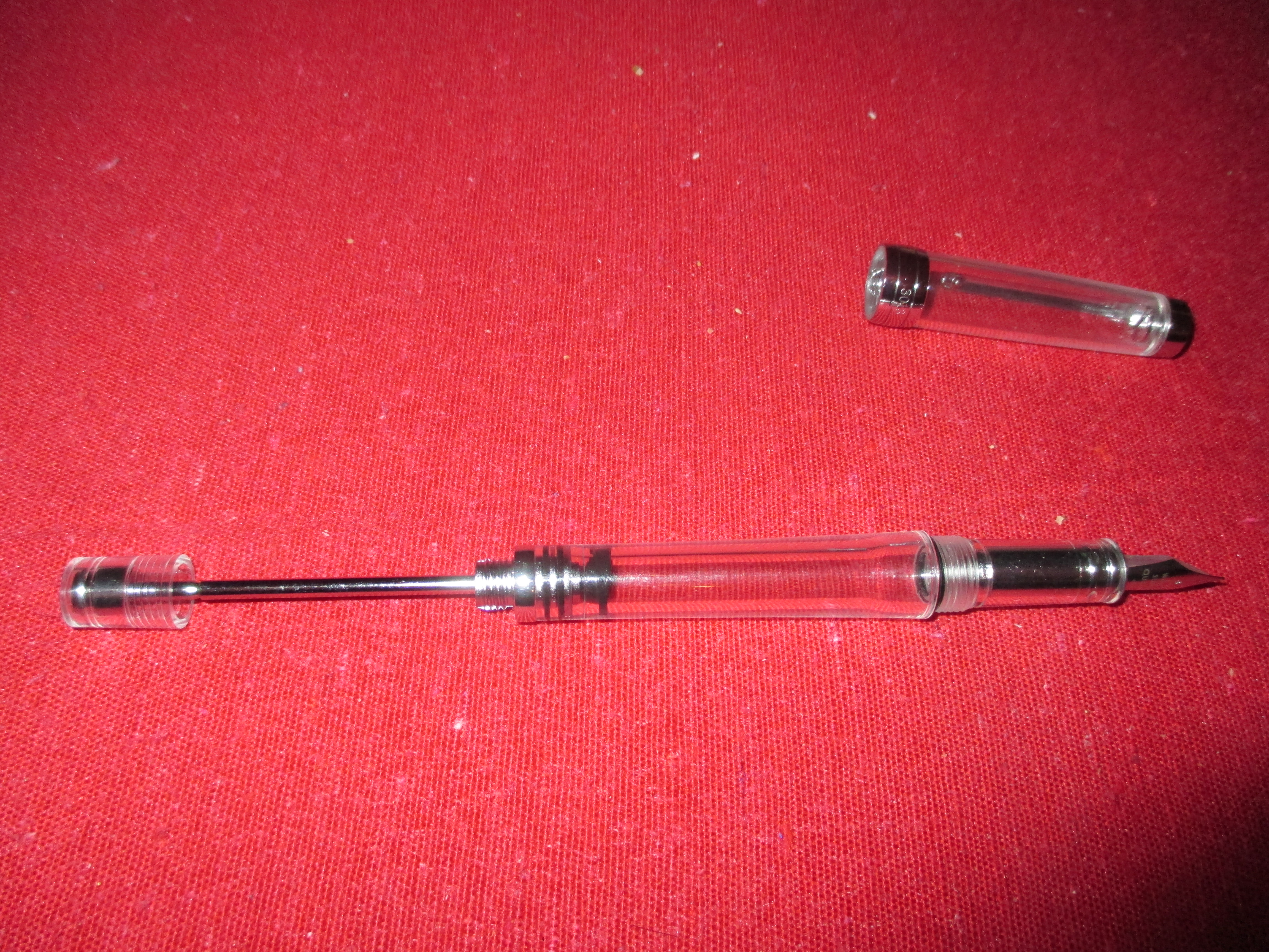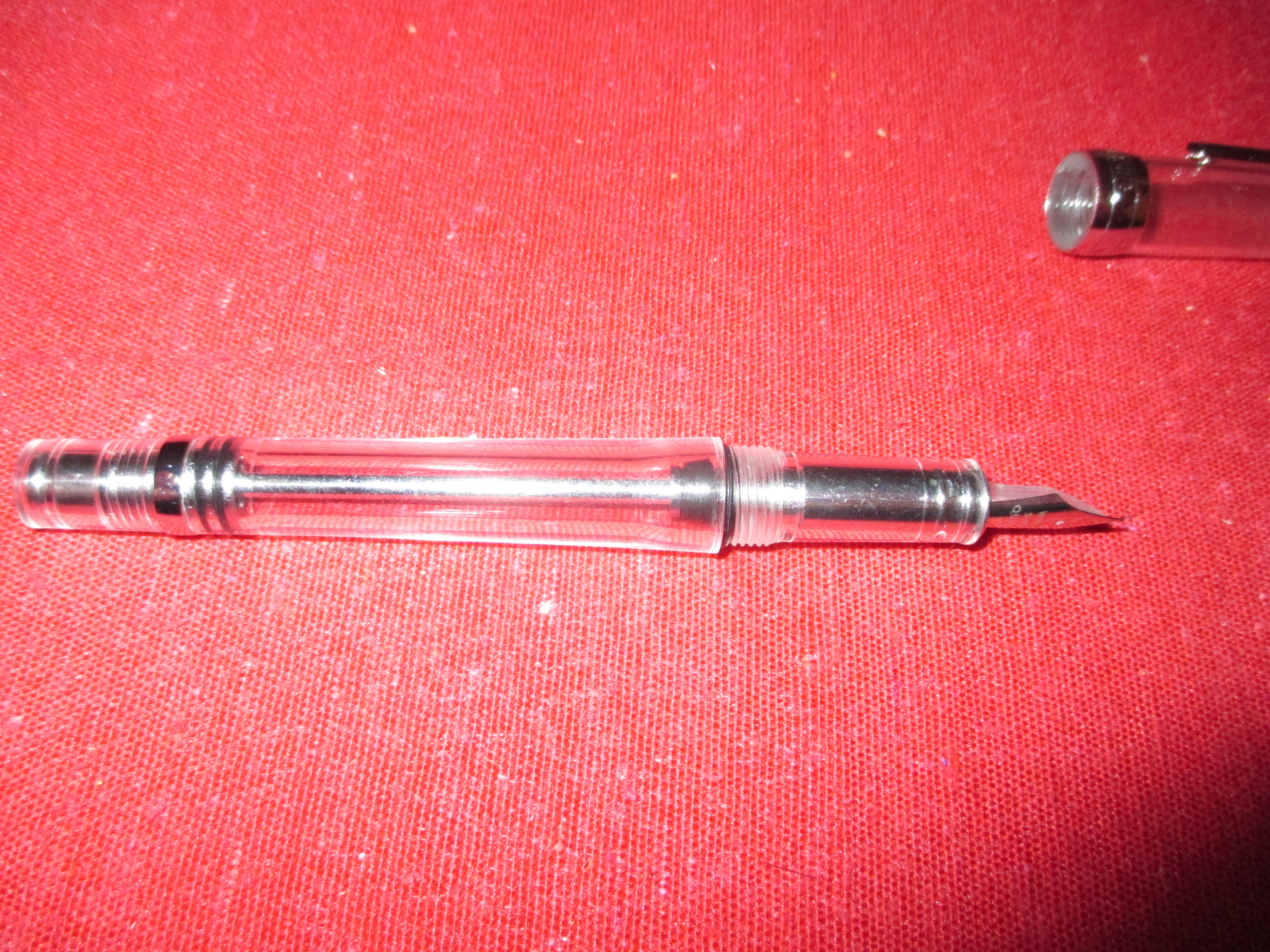 Ma andiamo con ordine; la penna viene spedita direttamente dalla Cina, questo significa tempi di consegna relativamente lunghi (3 settimane in media). Arriva in una bustina cartonata verdina con scritte in caratteri cinesi e senza nessuna protezione, infatti, la mia è arrivata con la clip graffiata… La penna ha una buona consistenza e l’acrilico con cui è fatta sembra di qualità, il pennino in acciaio riporta il marchio del produttore ed un'altisonante scritta "super quality" , la misura è EF e lo stesso scrive benissimo ed è scorrevole e in 1 settimana di prova non ho mai avuto false partenze o altre anomalie, forse anche perché il cappuccio a vite si blocca su una guarnizione in gomma sul fusto impedendo all’inchiostro di seccarsi, la veretta sul cappuccio è in metallo e riporta la scritta Wing Sun.