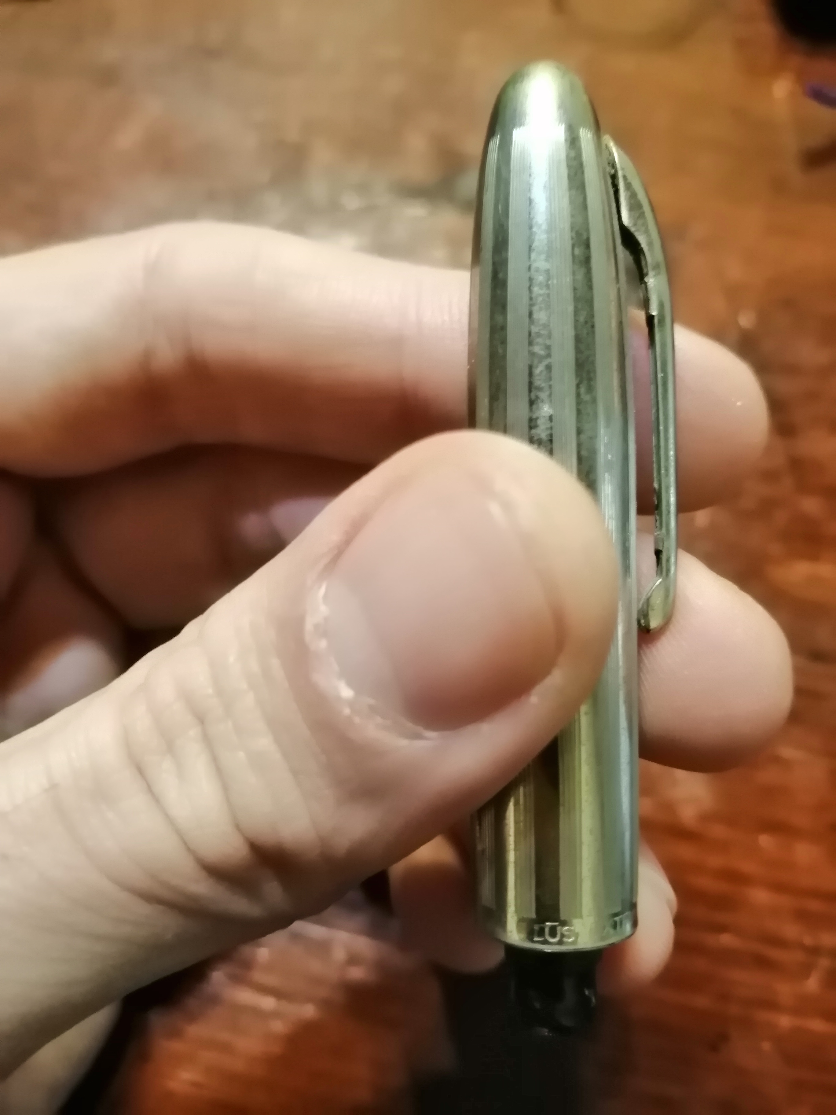 Nella parte posteriore della sezione c'è della gommalacca secca ma la penna non ha la levetta.