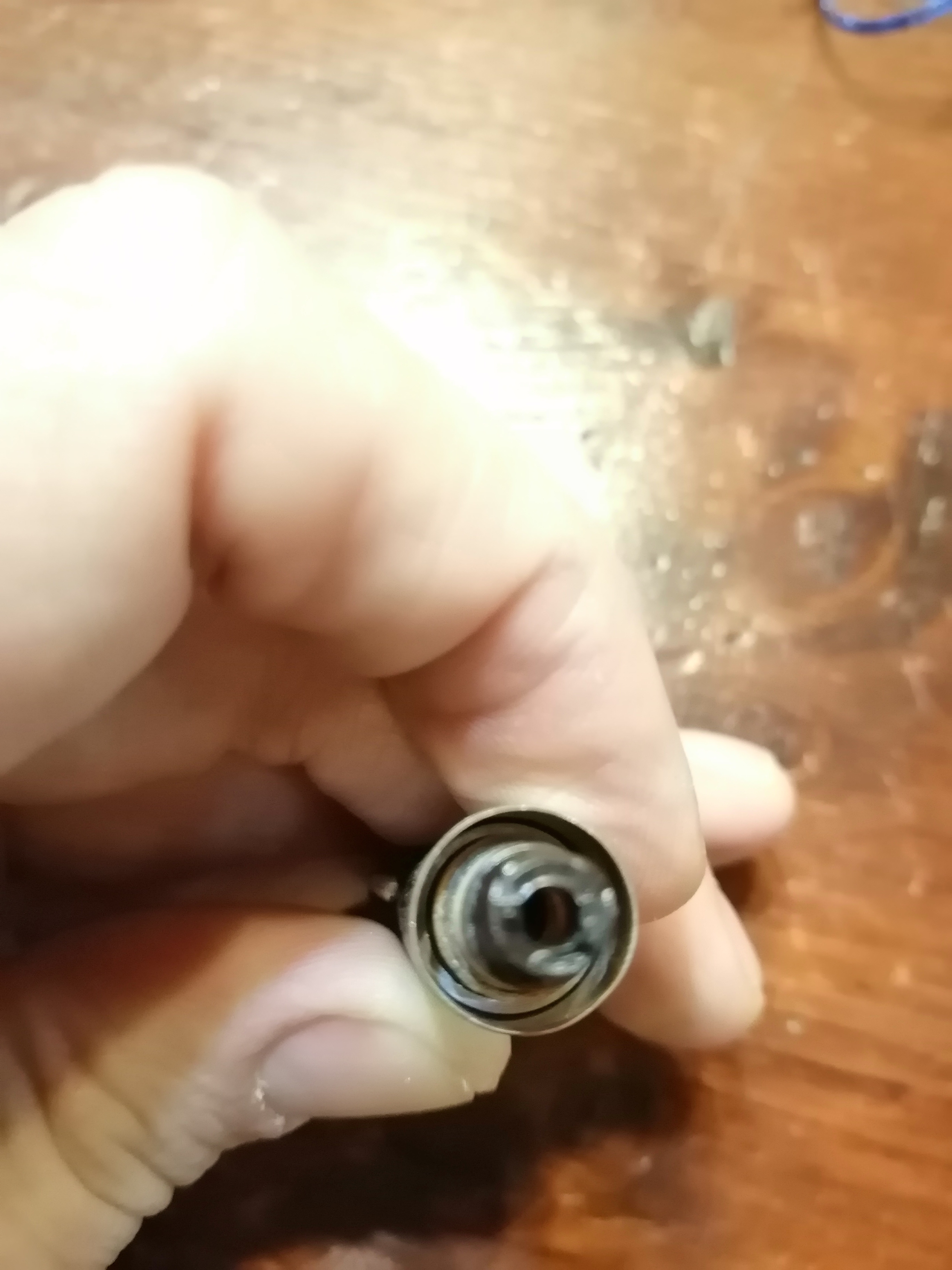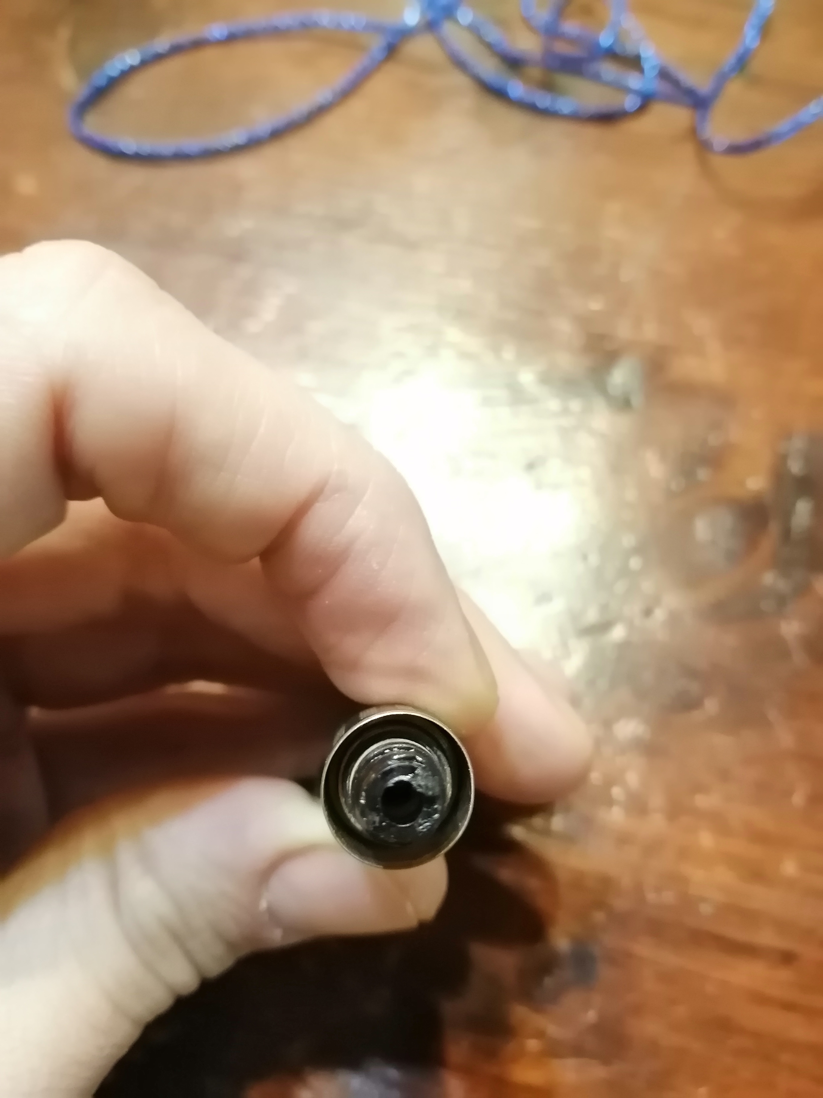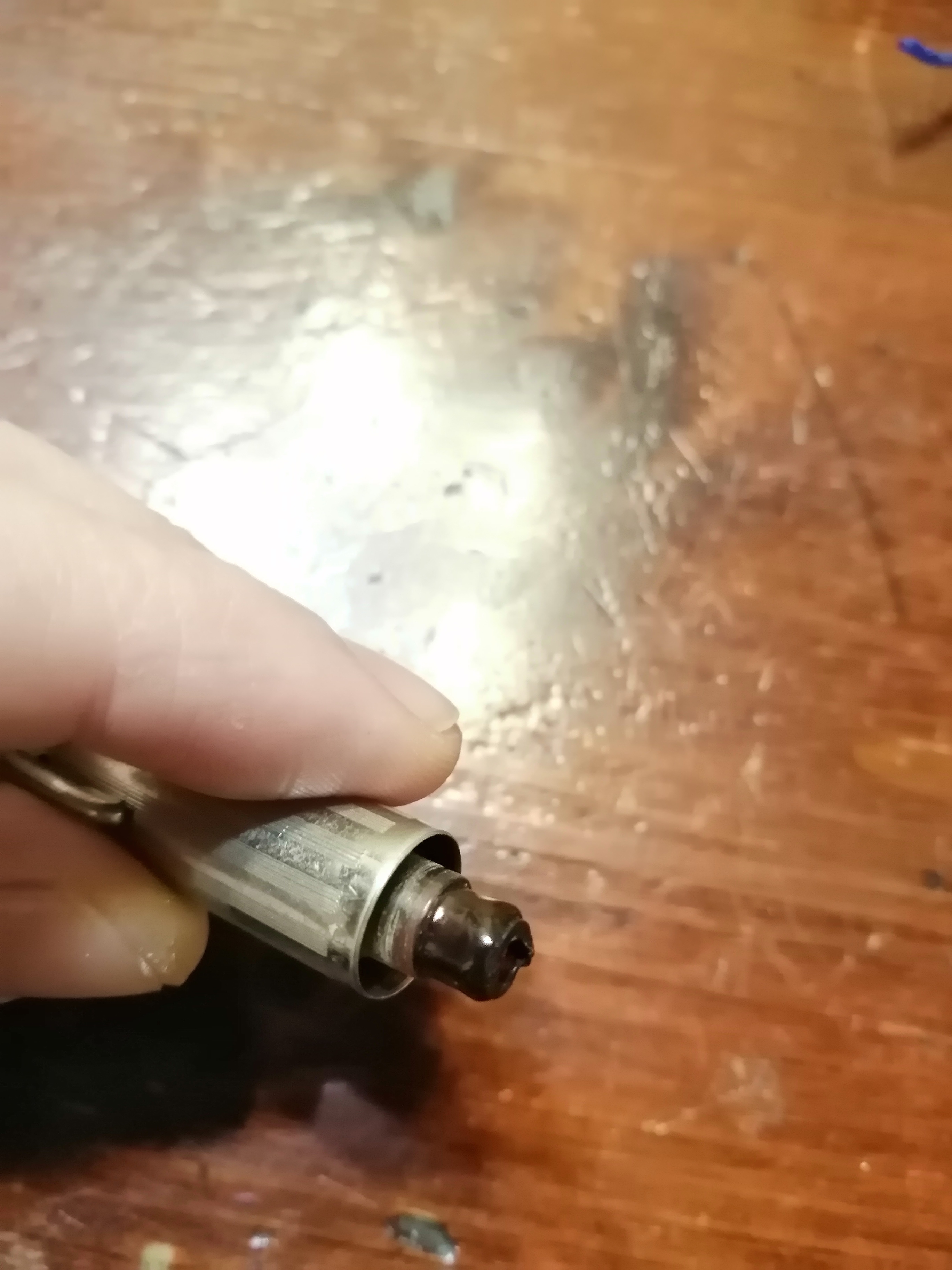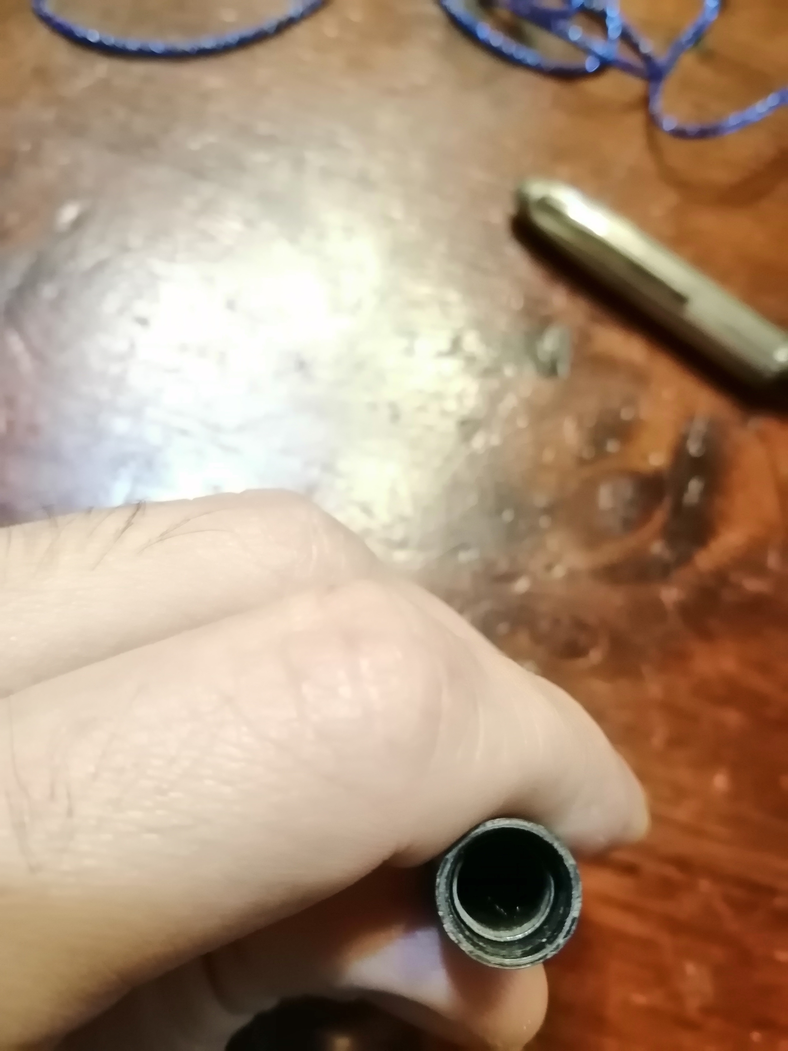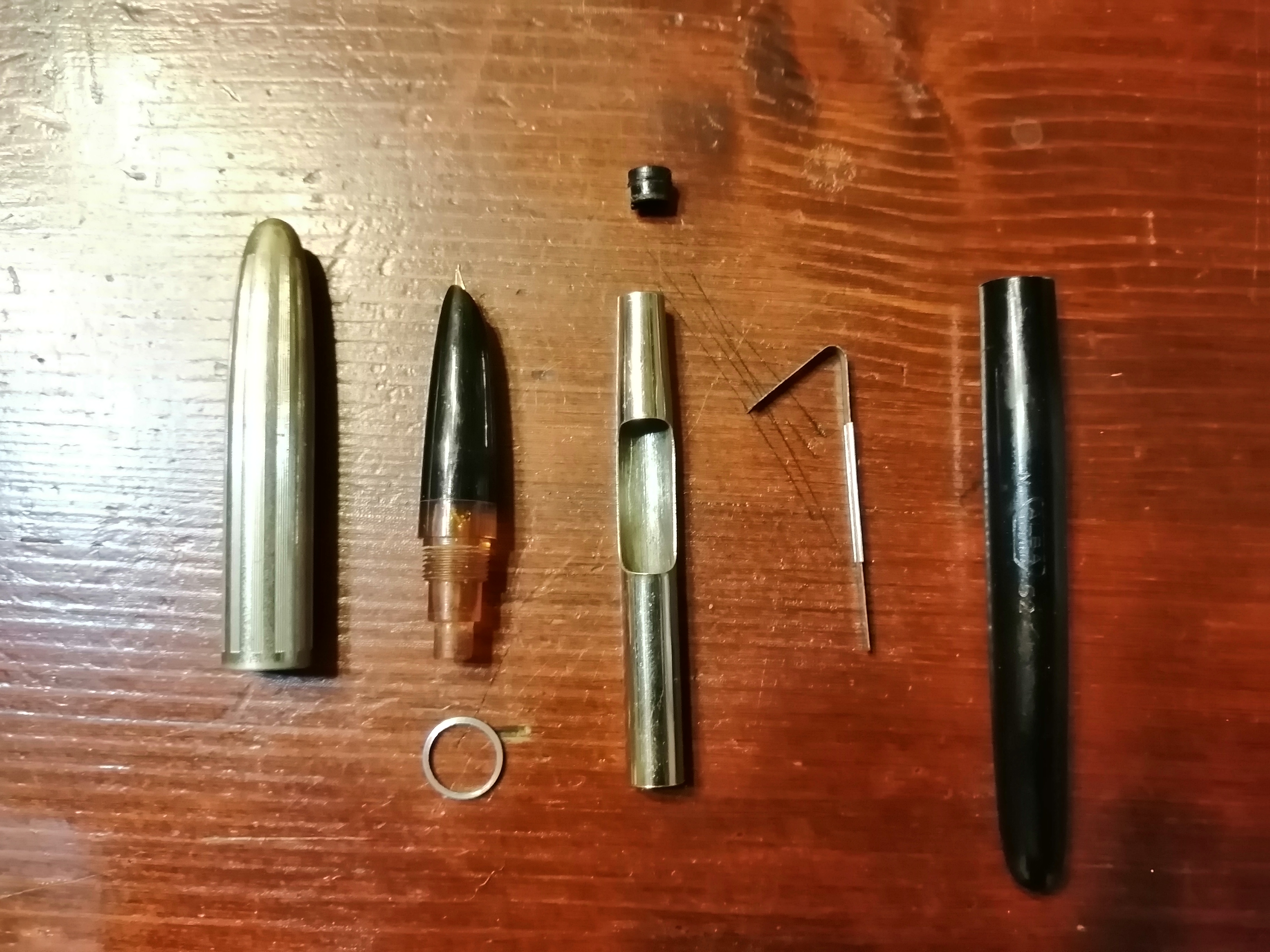 Questo è il fusto in cui si vede il cilindretto metallico, con dentro qualcosa di molliccio, per ora non so dire se sia inchiostro o un sacchetto deteriorato...