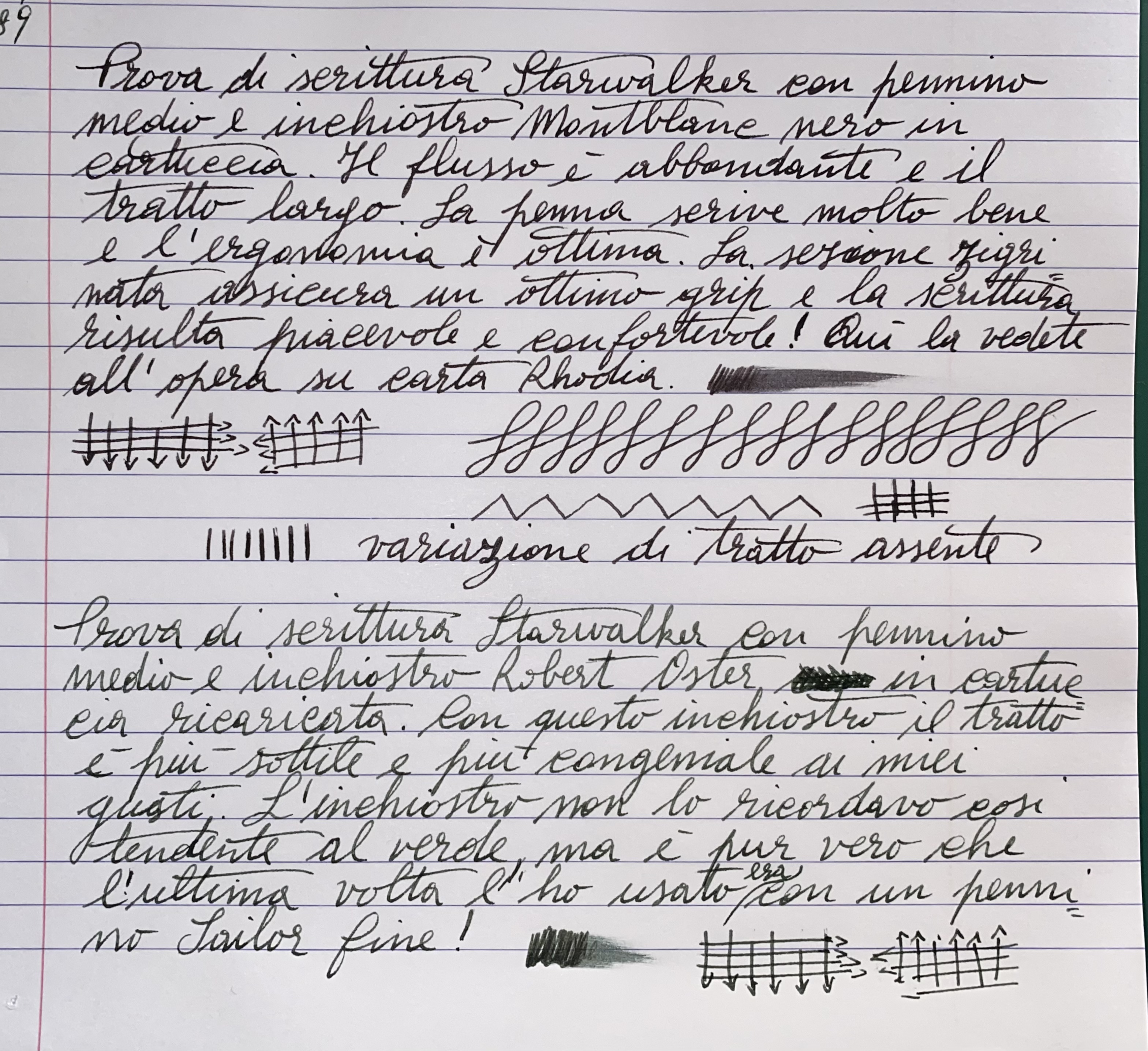 Proprio oggi sto provando una Starwalker con pennino M che per me è un filo abbondante. Inizialmente l’ho provata con inchiostro Montblanc nero, poi l’ho sostituito con il succitato Robert Oster graphite. Visivamente non sembra esserci tanta differenza ma nell’uso si, il graphite è più asciutto e non ho quella sensazione che stia uscendo troppo inchiostro. :wave: