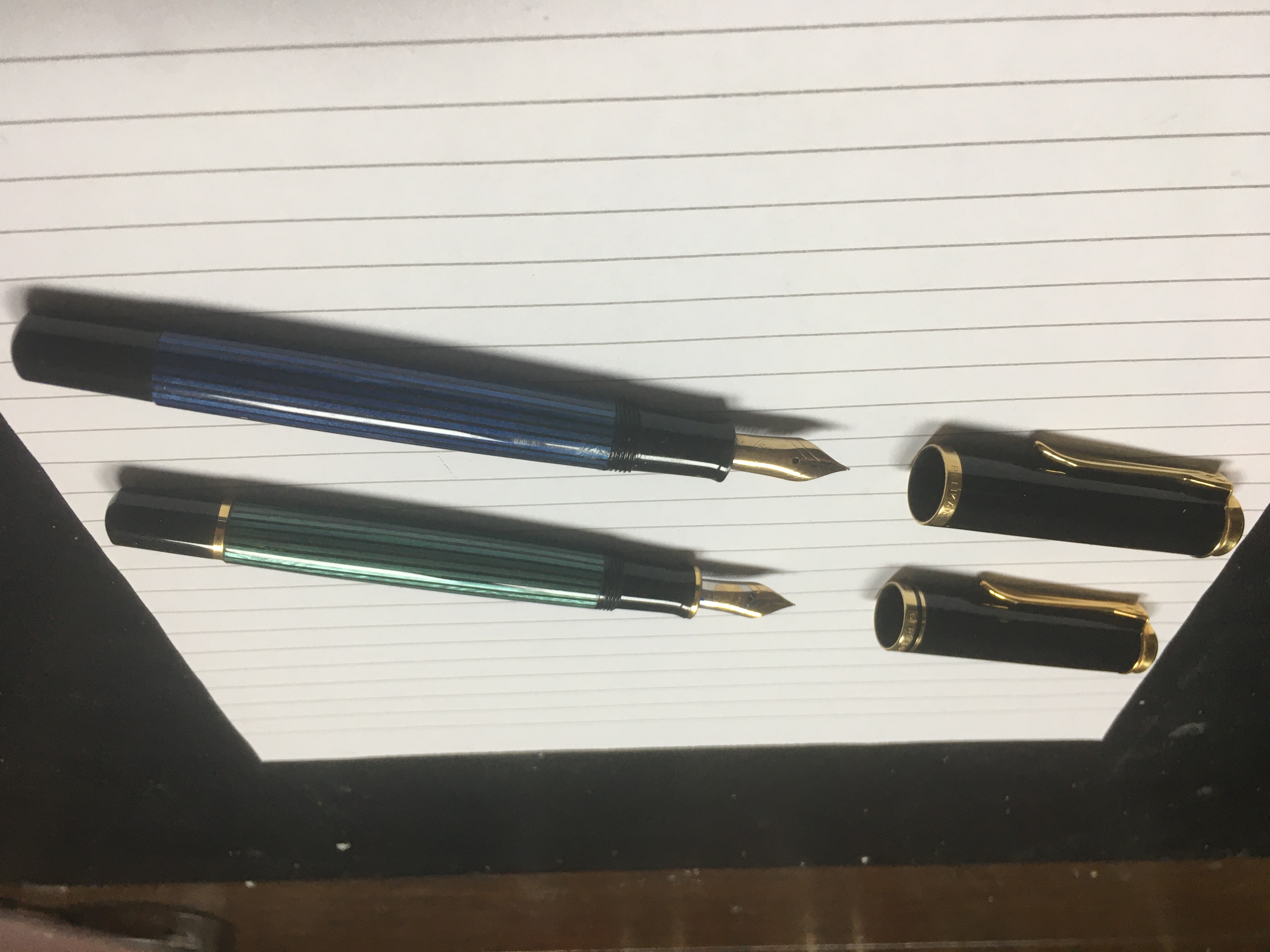 pubblico la foto di due mie penne Pelikan, che dovrebbero essere entrambe modello souveran M 400, in quanto non riesco a capire il perché della differenza di alcuni particolari: