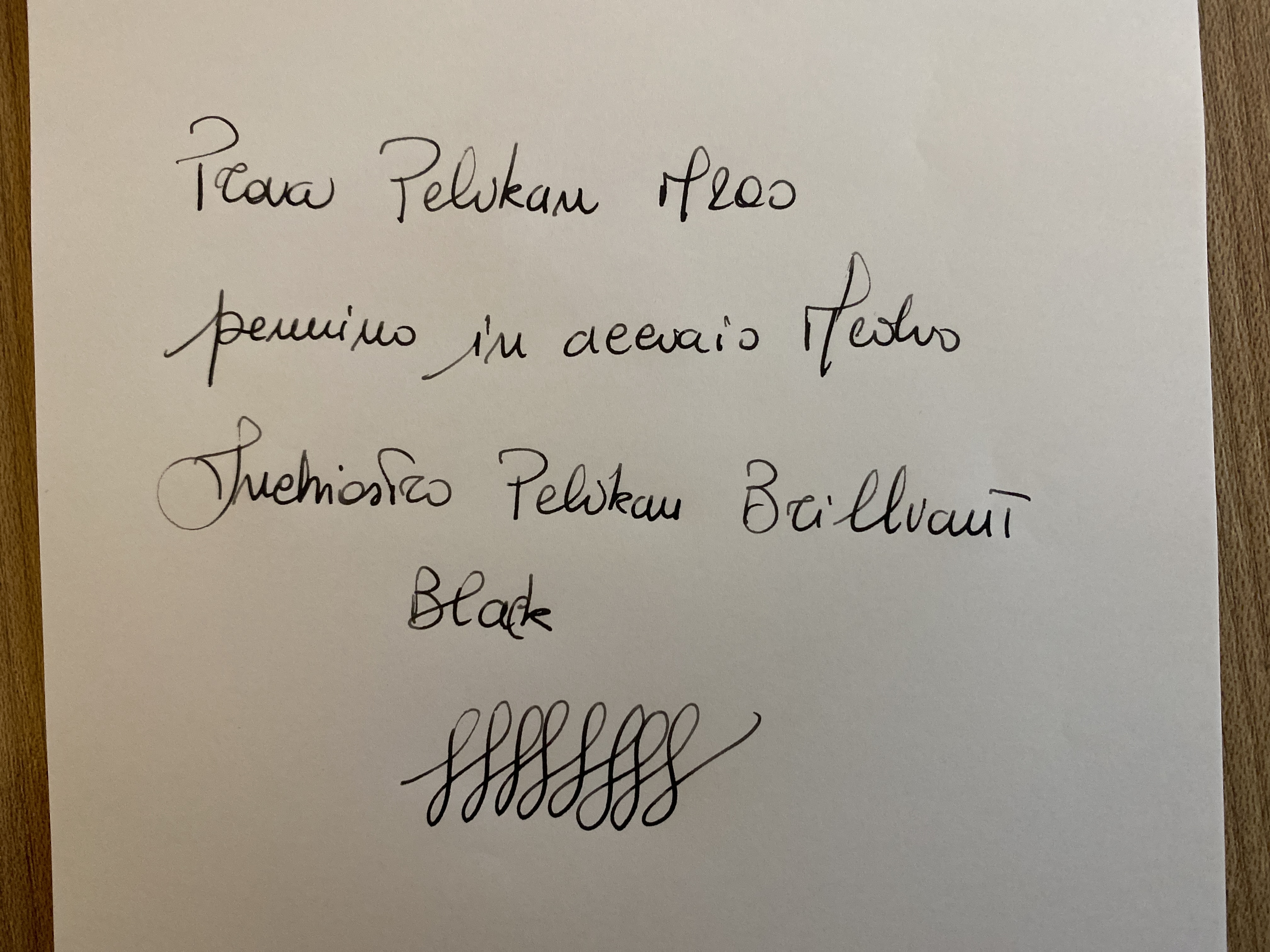 Desidererei scrivere con un inchiostro molto nero, con un tratto medio normale. (Ho paura che il fine della Pelikan non mi soddisfi a livello di scorrevolezza... Non so)