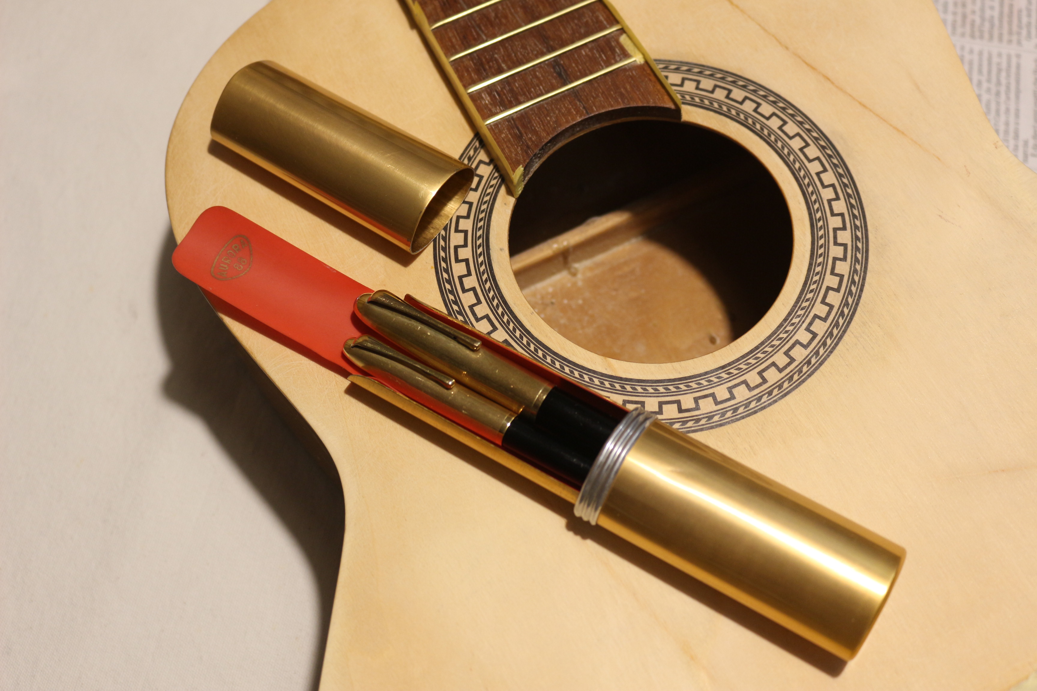 N.B. La chitarra è in fase di restauro, ho appena applicato la rosetta e la sto per verniciare a gommalacca.