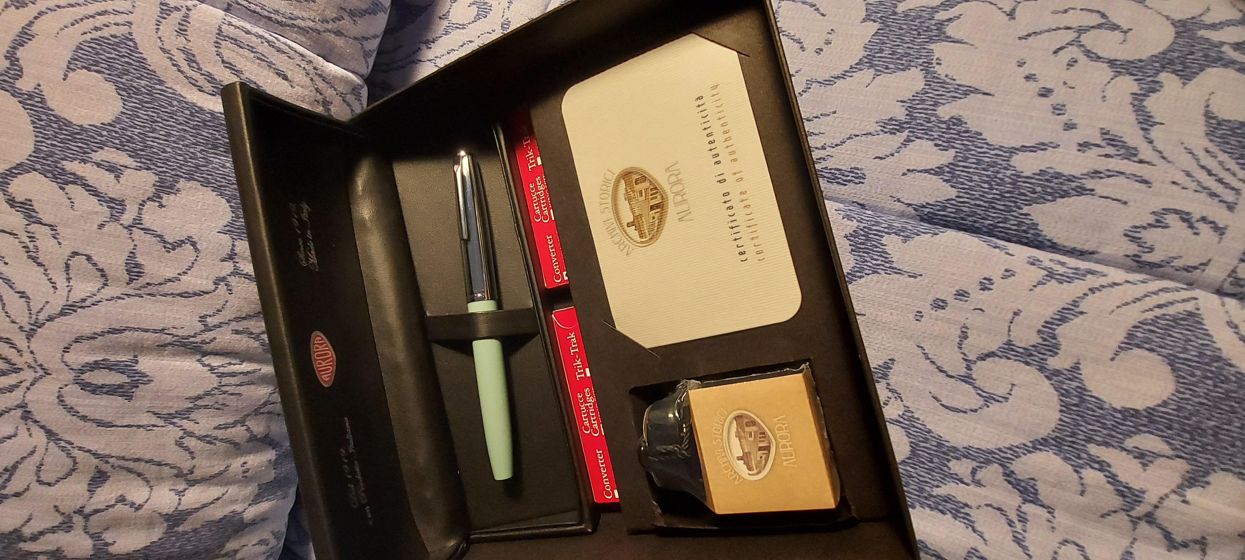 Dopo lunghi tentennamenti, più che altro legati al fattore economico, verso la fine di gennaio 2021 mi sono, finalmente deciso ad acquistare una Aurora Duo Cart. Premetto che la penna mi era sempre piaciuta sin dai primi giorni della riedizione alcuni anni fa, ma appunto un poco per il prezzo a mio avviso spropositato in rapporto alla sostanza, un poco per dare spazio ad altri acquisti, e un poco, perche no, alla mancanza di fiducia nelle penne italiane che mi ha sempre accompagnato, ma questa è una percezione personale su cui gradirei non si scatenassero sterili chiacchiere da barbiere da bar o da Curva Sud, grazie.