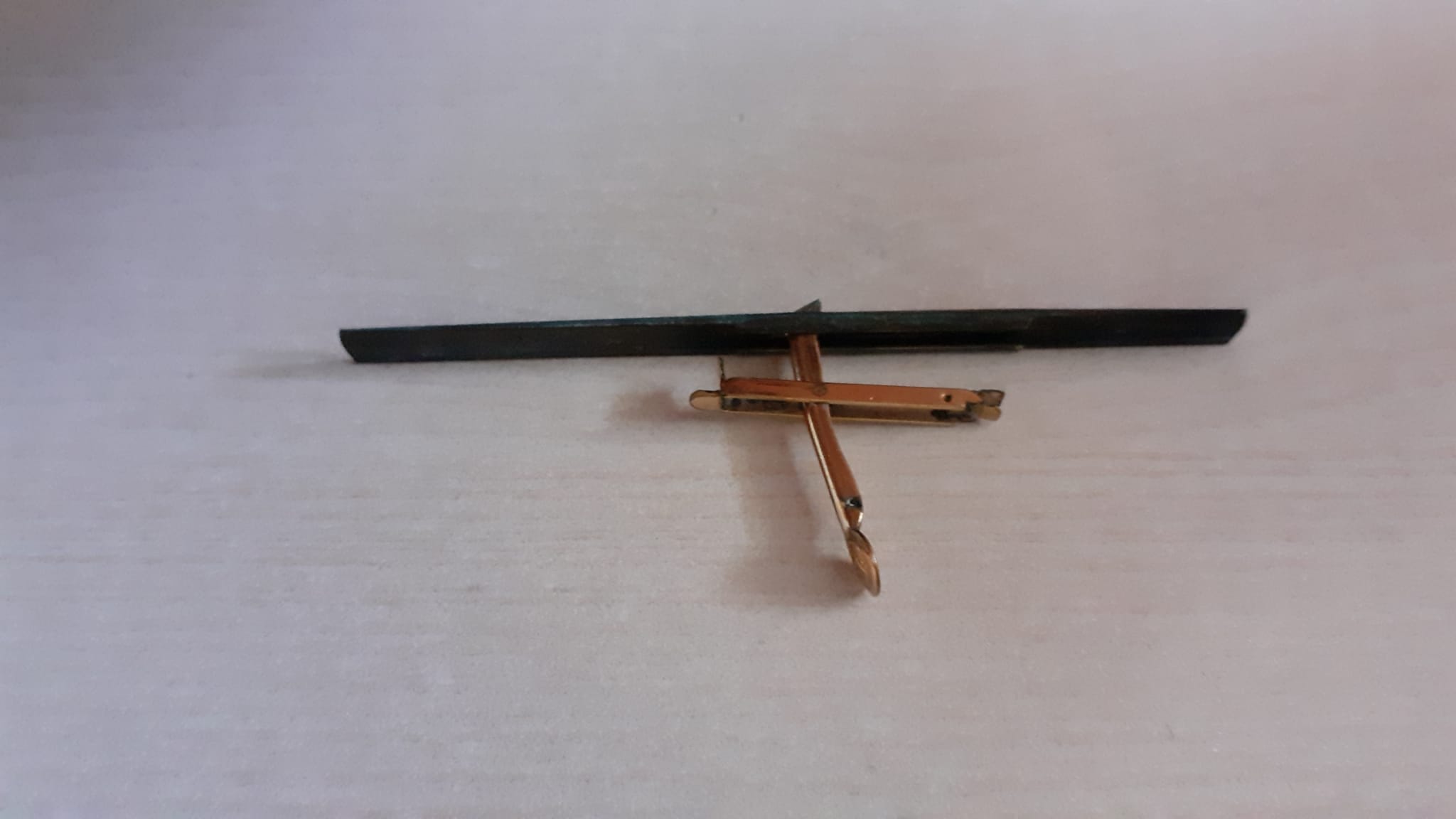 Piccolo aggiornamento: sul fusto della penna, che è come pensavo in ebanite di quelle vecchio stile, c'è una stampigliatura "Charles Lavauzelle" Paris Limoges e sul "fondello" A1 che forse sarà la misura della penna. Sul fermaglio invece c'è una scritta "Ideal Paris" deposè. Non trovo nessuna informazione, ma facendo un po' di deduzioni potrebbe essere una Waterman Ideal prodotta in Francia e in una produzione per qualche negozio di stilografiche, anche se quella croce di Lorena mi sembra veramente strana. in più la levetta è agganciata alla barra a j in un modo strano e non riesco ad estrarla, cosa necessaria visto che è arrugginita.