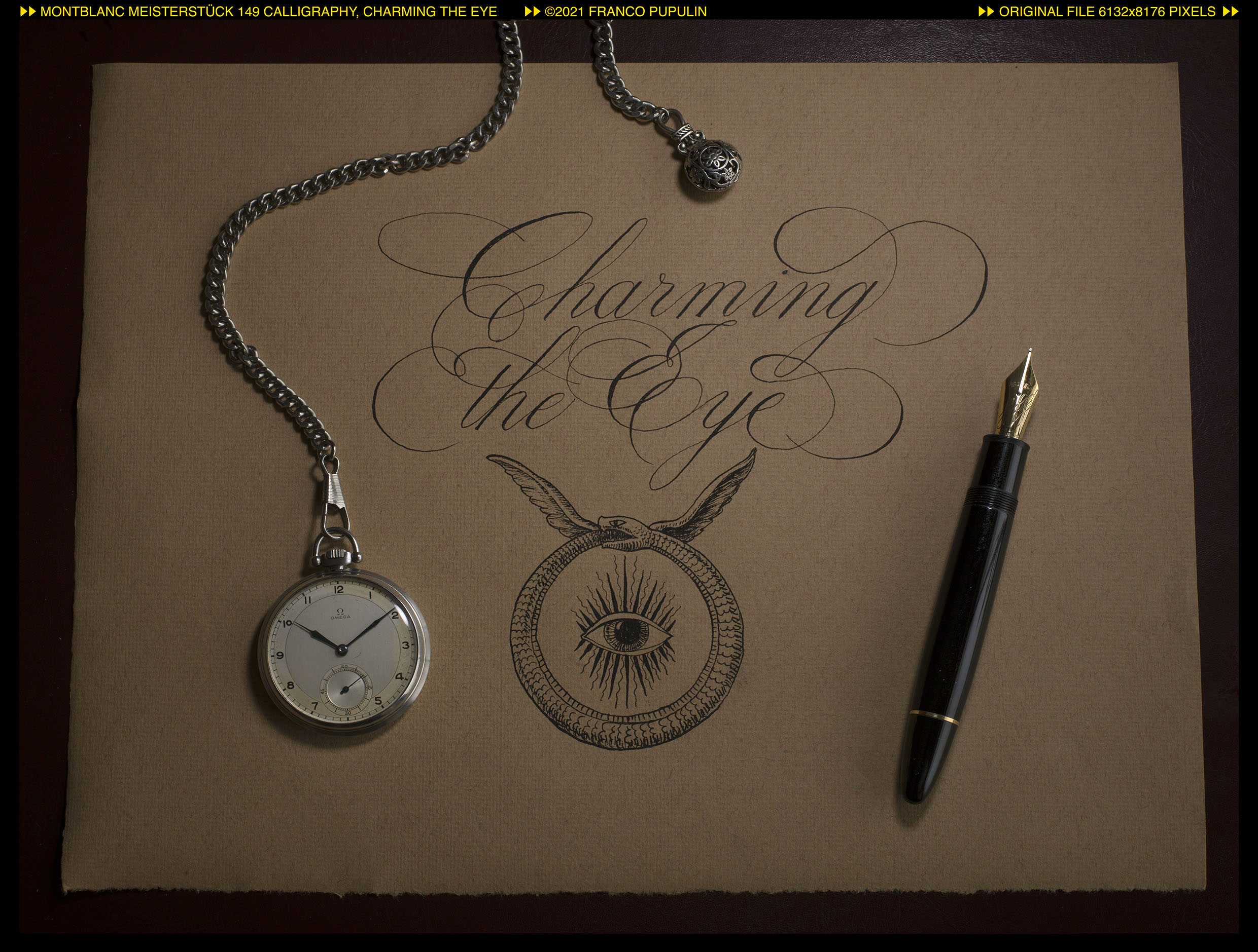 Ho approfittato della bella scelta che offre il blocco Ingres di Hahnemühle, con la sua carta vergata in nove colori diversi, che vanno dal bianco candido al grigio ardesia e al nocciola scuro. Per il tema dell'"incantesimo" mi é sembrato interessante usare un foglio scuro, dal colore quasi bruciato.