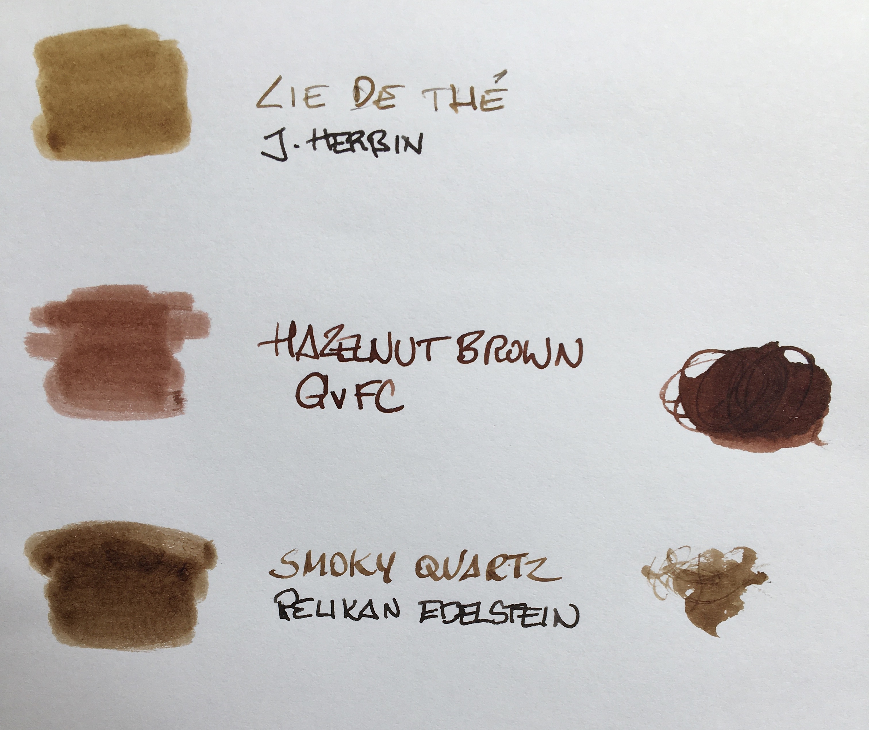Il mio marrone preferito rimane, come colore, il cafè des iles di Herbin, il quale inchiostro mi intasa anche le penne della cartoleria vicina, e riesce a fluire decentemente solo attraverso il cannaccio della LAMY 2000 OBB