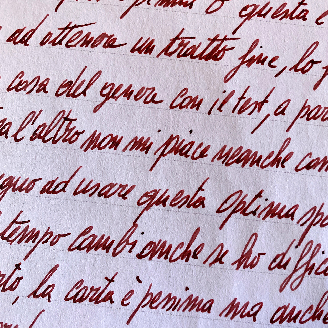 Cerco da un po' di tempo un inchiostro nero tendente al rosso, per uso quotidiano, quindi non troppo rosso, ma nemmeno troppo nero. Soprattutto non deve contenere sfumature tendenti al rosa o viola. Quelli più simili a quello che cerco sono il Diamine Oxblood, che però a volte mi dà l'idea di avere un rosso un po' tendente al marrone e poco acceso, e dall'altro il Diamine Ancient Copper, che come intensità di rosso ci siamo quasi ma manca la componente nera.