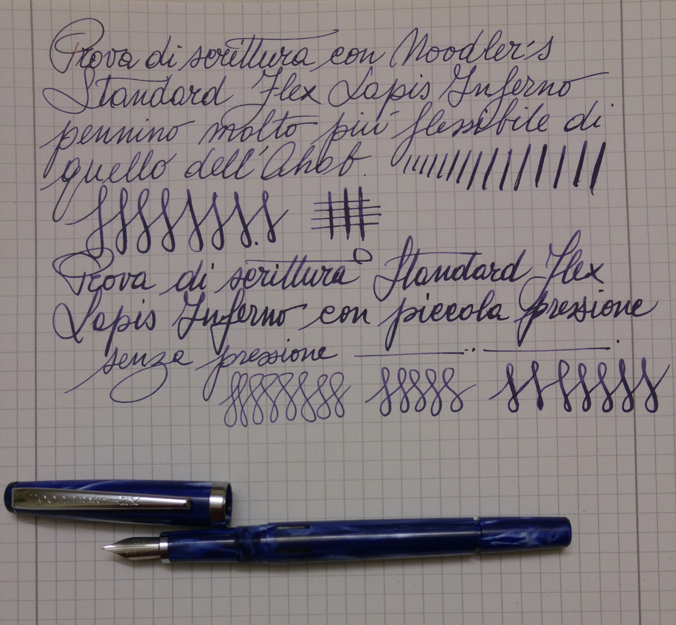 Su tutto il resto del post concordo in pieno con Lamy che anzi, se vogliamo, è stato persino troppo gentile riguardo alla flessibilità del pennino Noodler's. (per flettere flette, ma ci vuole un bel po' di pressione).