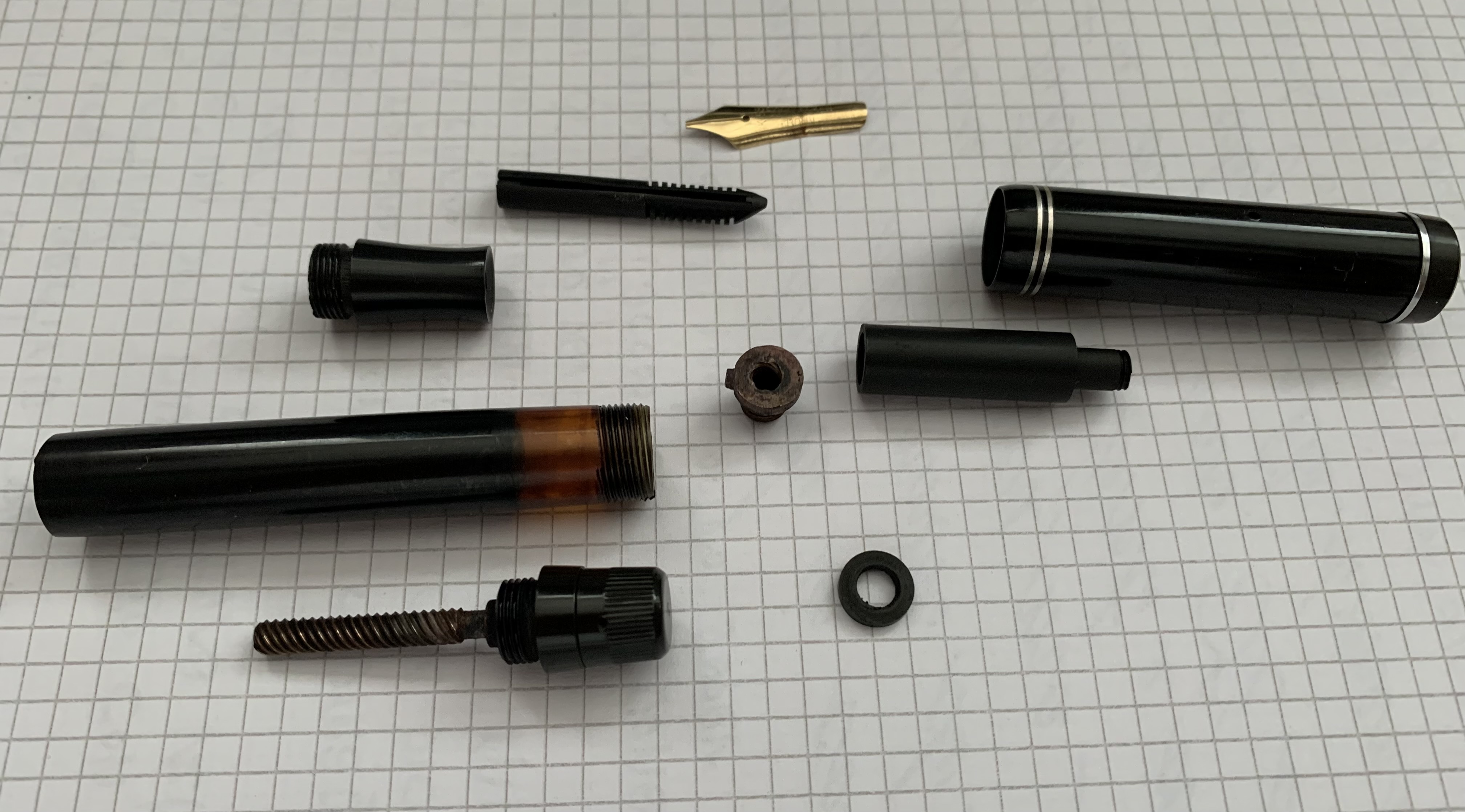 Ero in dubbio su come smontare la parte del fru scrittura per pulire l'interno del serbatoio e molto probabilmente anche pennino ed alimentatore, non so che diavolo di inchiostro usassero ma è veramente tenace da togliere (la penna ha rilasciato nell'ordine prima colore blu/nero, poi nero, poi in ultimo una specie di viola/nero).