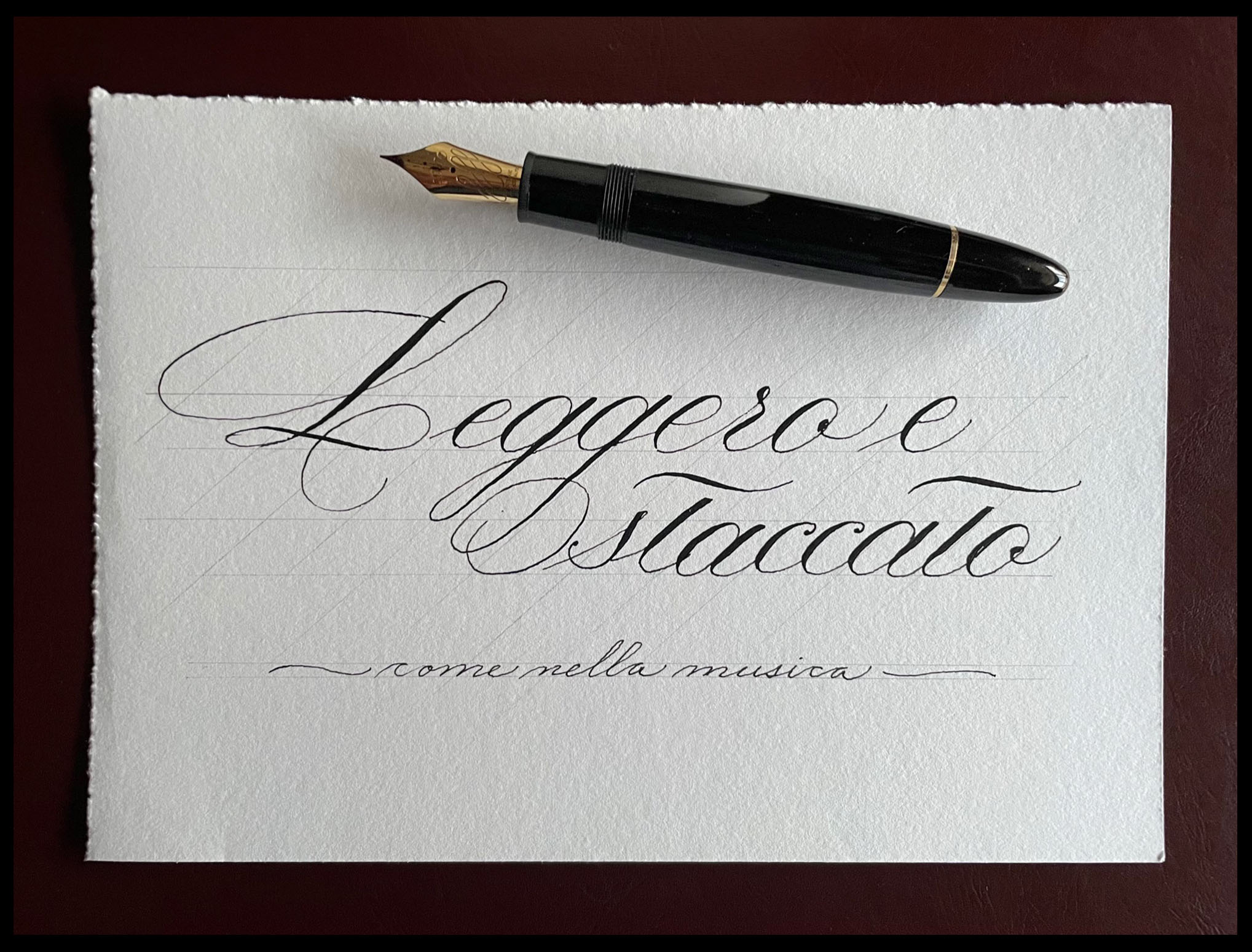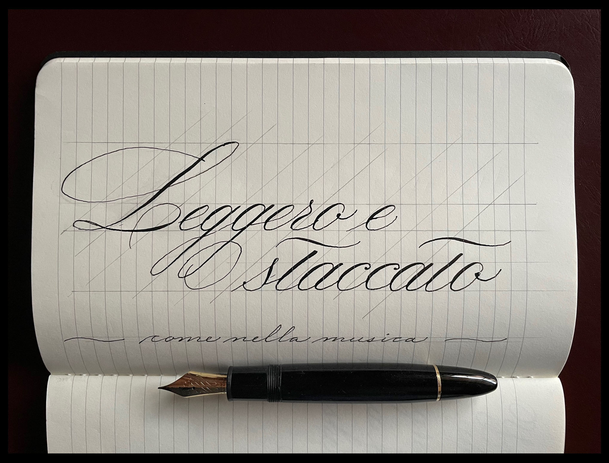 L'utilizzo di una penna con pennino flessibile finissimo insegna a mantenere la mano molto leggera e a sollevare il pennino dalla carta ad ognuno dei tratti che compongono le singole lettere