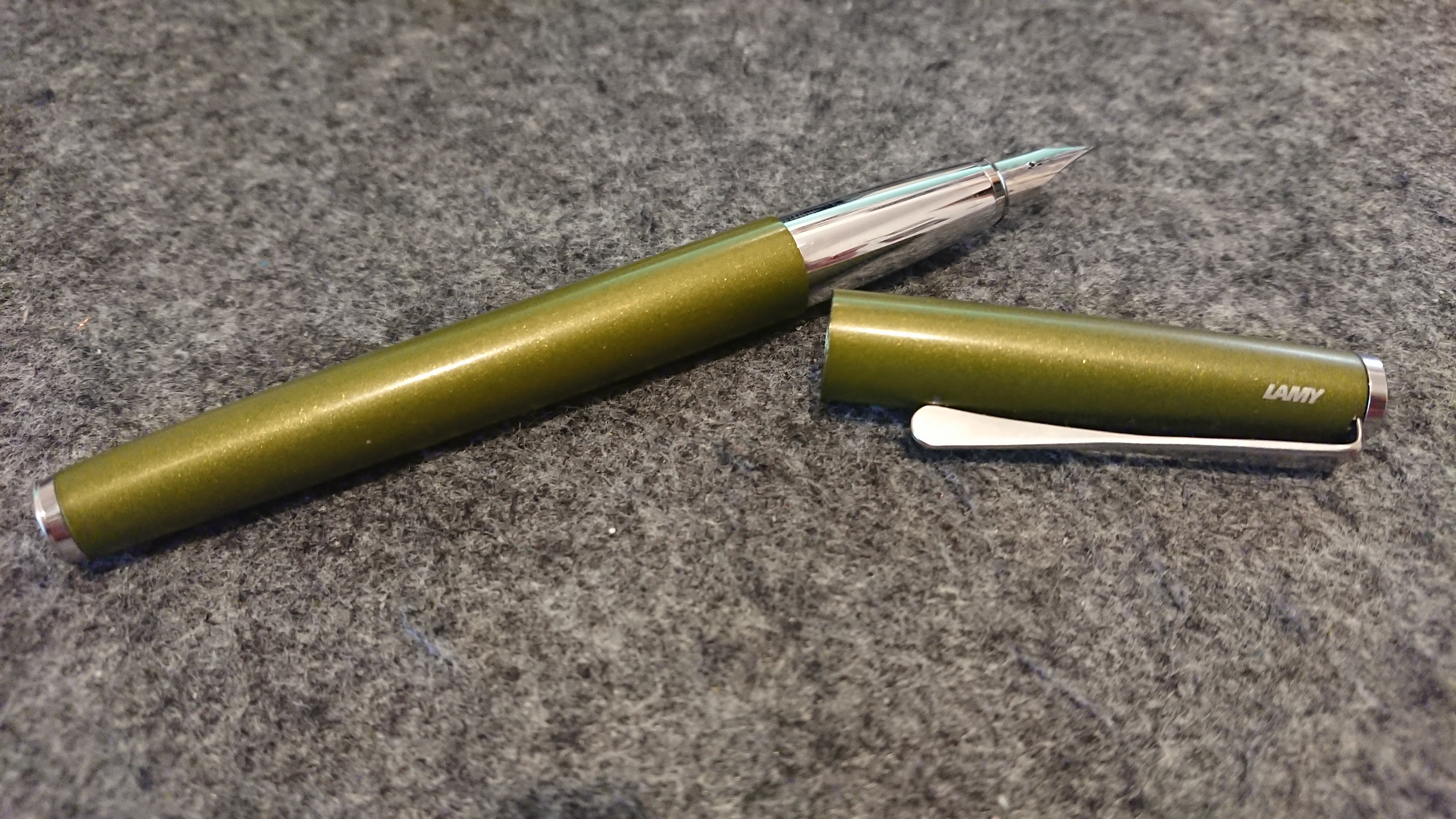 possiedo da un paio d'anni la Lamy che vedete in foto (pennino EF - Inchiostro Lamy Cristal Ink "Obsidian") che funziona molto bene. Un po' alla volta si è allentato il sistema che blocca il cappuccio in sede, con il classico click quando si chiude, tanto che adesso la penna tende ad aprirsi da sola appena la si prende in mano.