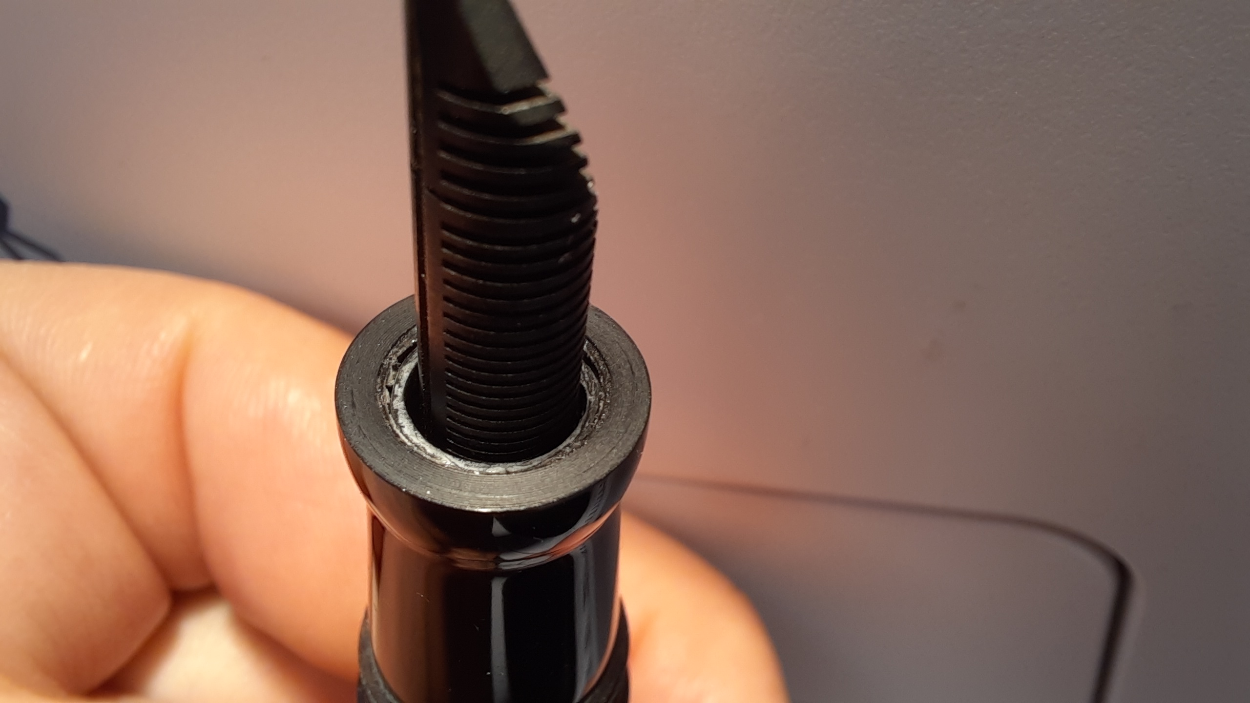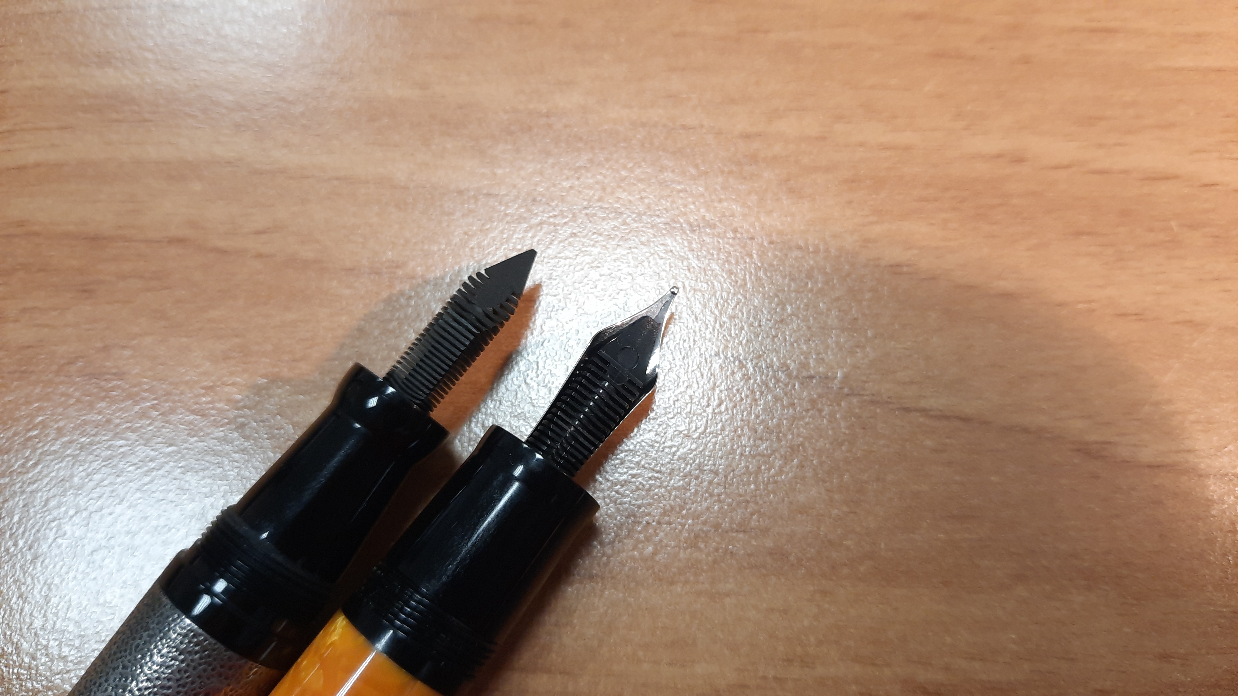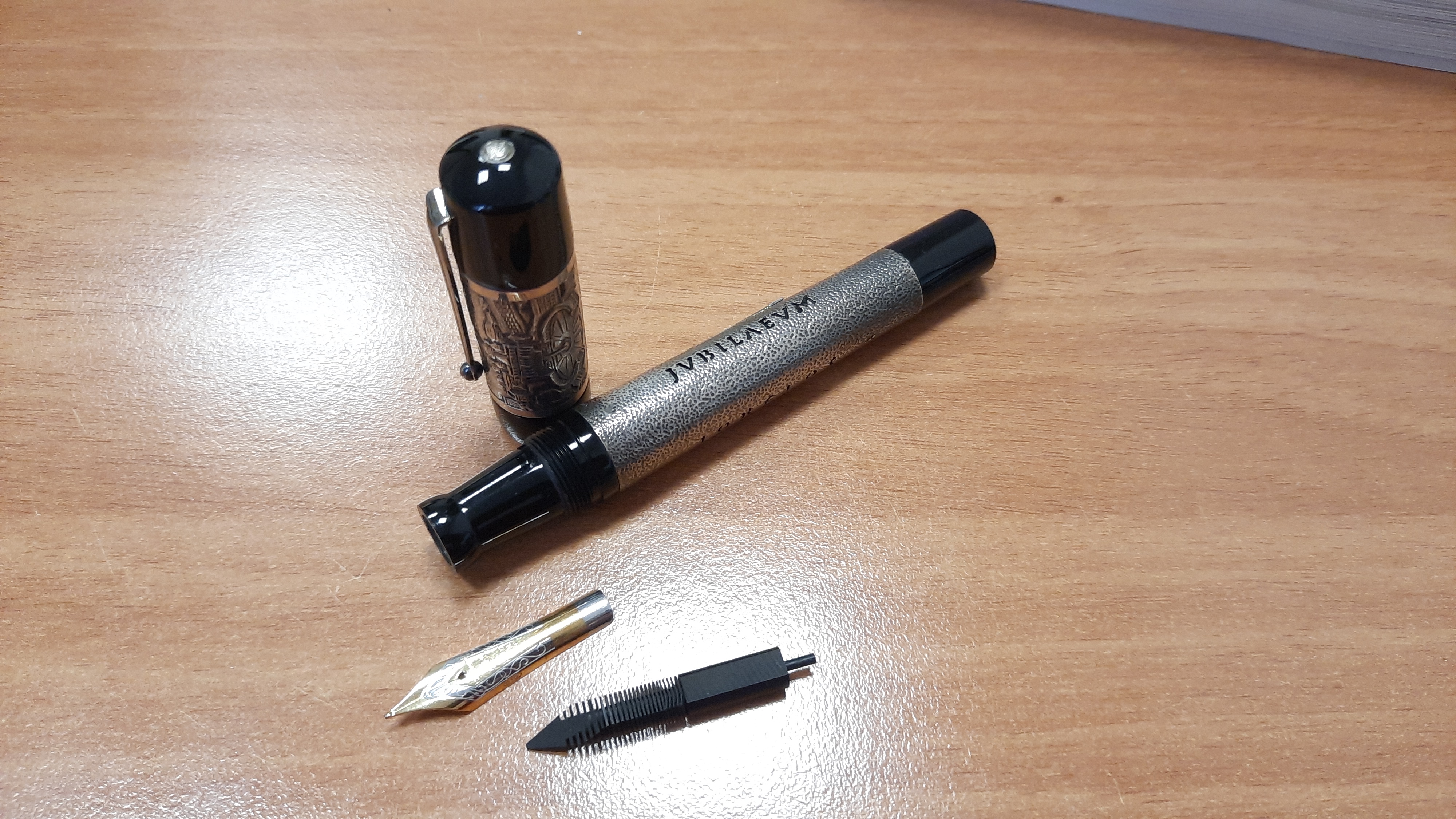 Mi è appena arrivata una Delta Jubilaeum. Il venditore mi aveva avvertito che pennino e conduttore erano smontati ma al momento di rimontare il gruppo mi sono reso conto che il conduttore è più piccolo del dovuto. Ad occhio non mi sembra che manchi un collarino ma piuttosto che il conduttore non sia quello originale. Sulle altre Delta che ho mi sembra infatti più grande.