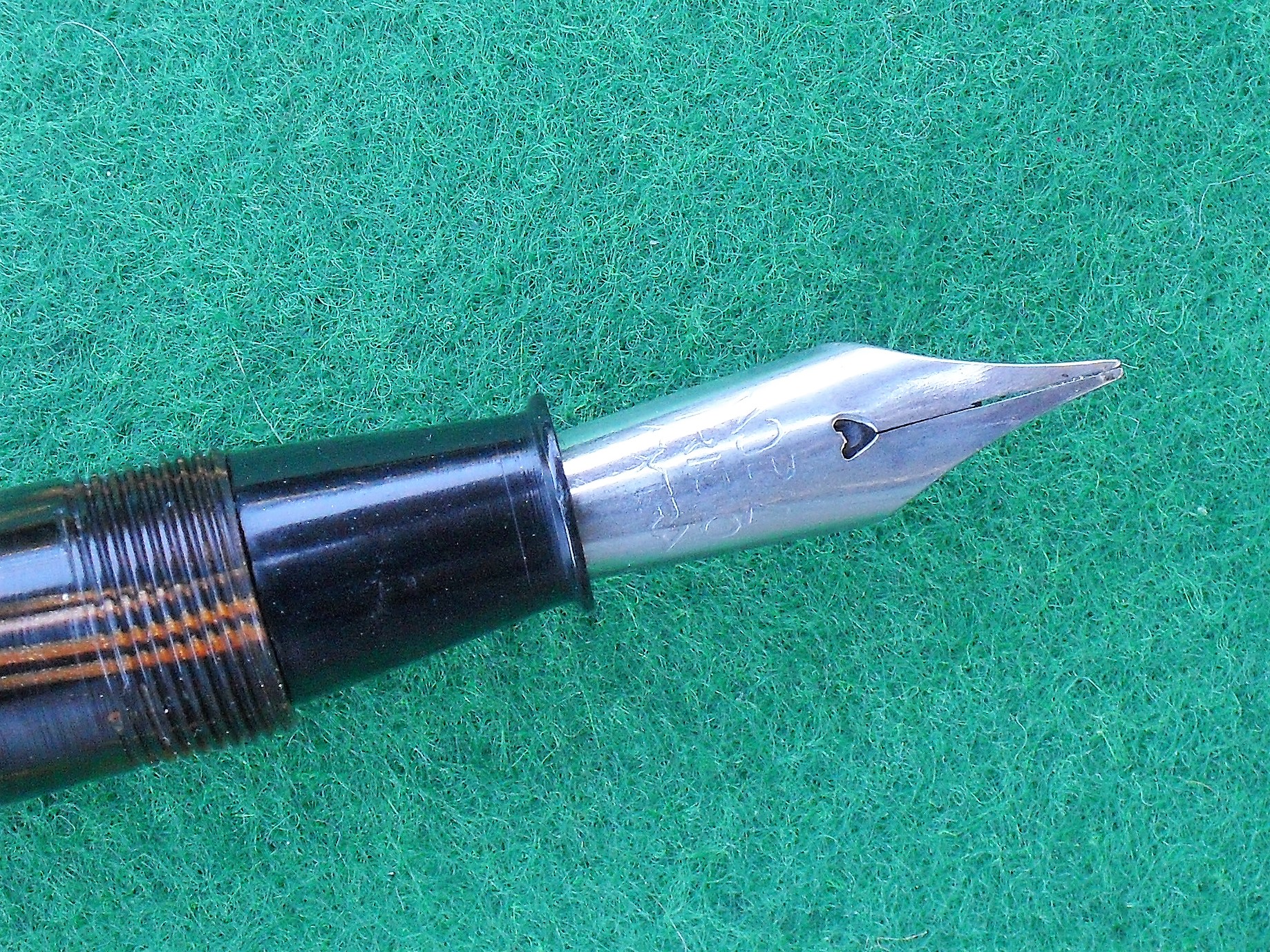 - peso del cappuccio: 7 gr Il pennino, marcato “Nobil iridio extra”, è in acciaio e, provato a secco, si manifesta scorrevole e realmente flessibile. Probabilmente, è frutto d’una sostituzione operata nel corso della seconda guerra mondiale, o della mancanza di metallo nobile tipica degli anni 1940 - 45.
