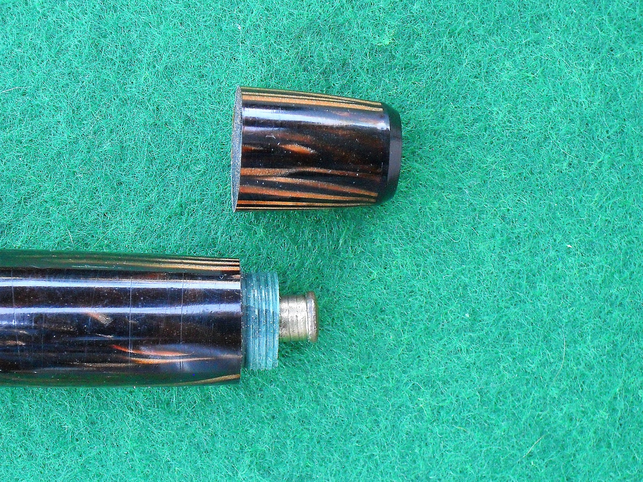 Confesso che non avevo mai sentito parlare del marchio, del resto non menzionato neppure dal nostro pur ottimo wiki. Anche la classica ricerca in rete non ha portato a nulla, il che non stupisce, perché persino Letizia Jacopini si limita ad una semplice menzione della Election, a pag. 242 del secondo volume del suo “La storia della stilografica in Italia 1900 – 1950”, affermando che si trattava di stilografiche in bella celluloide colorata, con alimentazione a pulsante di fondo o a stantuffo, prodotte negli anni Trenta e Quaranta, con particolari laminati e pennini d’oro ed ipotizzando una produzione torinese. Una cosa un po’ stupisce: sappiamo bene che il regime imperante in quegli anni in Italia non vedeva di buon occhio le terminologie esterofile; ciononostante, per questo marchio si scelse un inglesismo… La celluloide utilizzata per il fusto ed il cappuccio di questo esemplare è molto piacevole e robusta. Le dimensioni sono importanti: