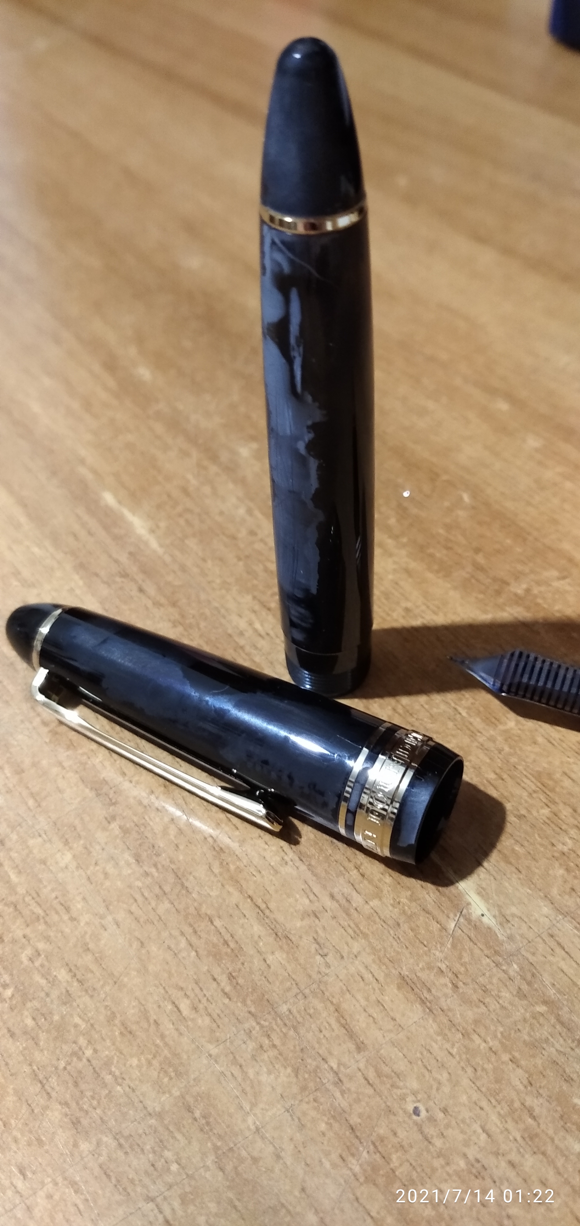 Sì, è una Sailor. Fortuna che non è una delle più costose, ma se il danno è irreversibile resta comunque un guaio, perché è una delle penne migliori che ho... Ovviamente continuerò a usarla perché scrive davvero bene... ma anche l'occhio vuole la sua parte...