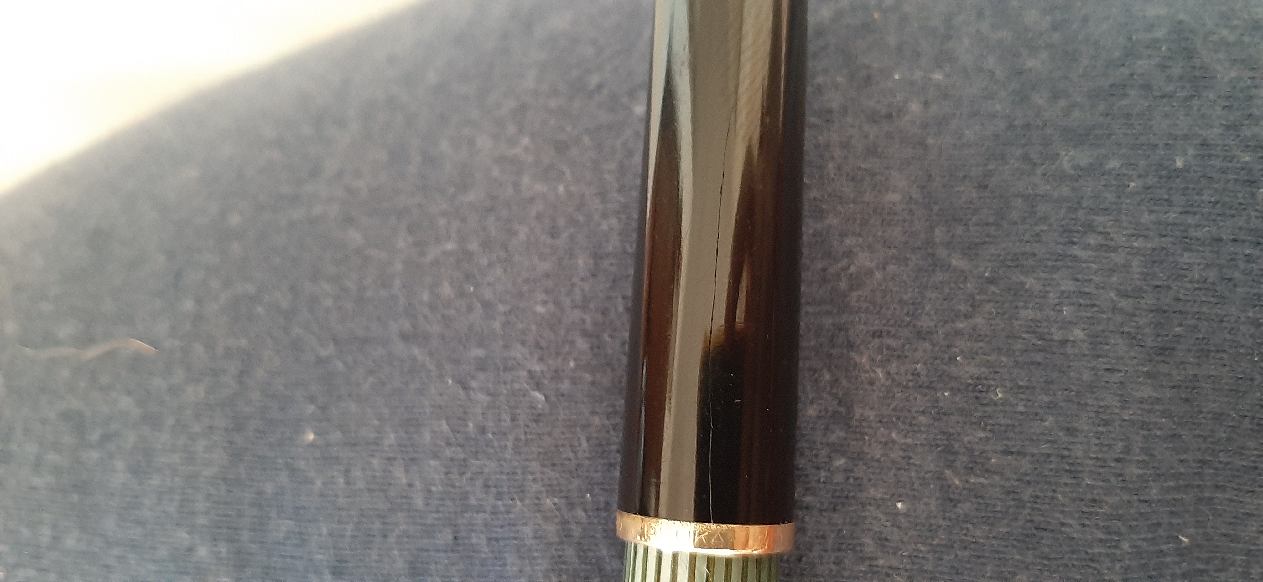 Come potete vedere in foto questo cappuccio presenta una crepa; debbo dire che dal vivo è praticamente invisibile ... però c'è; non mi sembra sia passante. Mi chiedevo se si potesse far qualcosa e cosa ? L'opzione di cercare un altro cappuccio non mi aggrada molto, sia perché quello presente è funzionale ed esteticamente più che accettabile, ma, sopratutto, perché questa penna scriveva prima che io nascessi e la voglio mantenere così come mi è arrivata ....