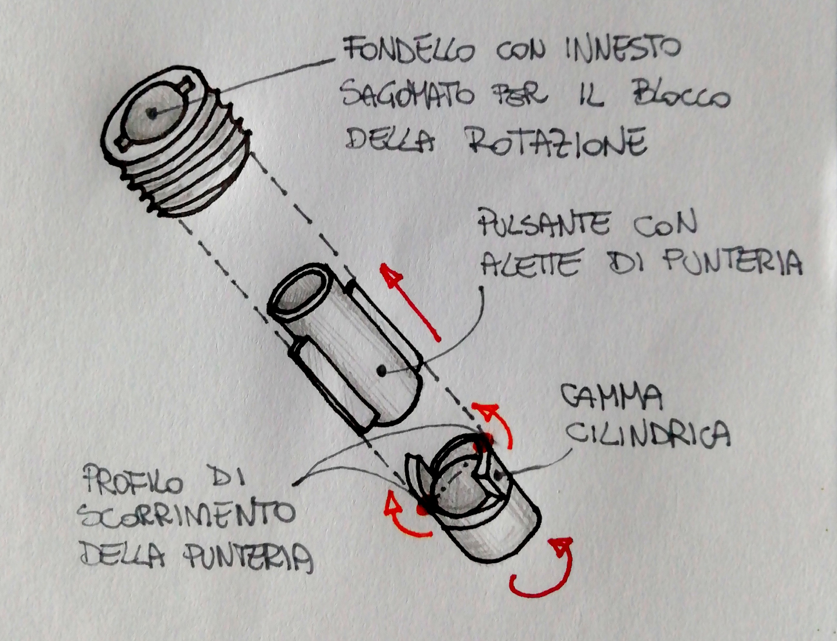 Girando questo terminale la camma ruota spingendo il pulsante; con mezzo giro si ottiene il massimo sollevamento del pulsante per poi ritornare in posizione di riposo (scalino della camma).