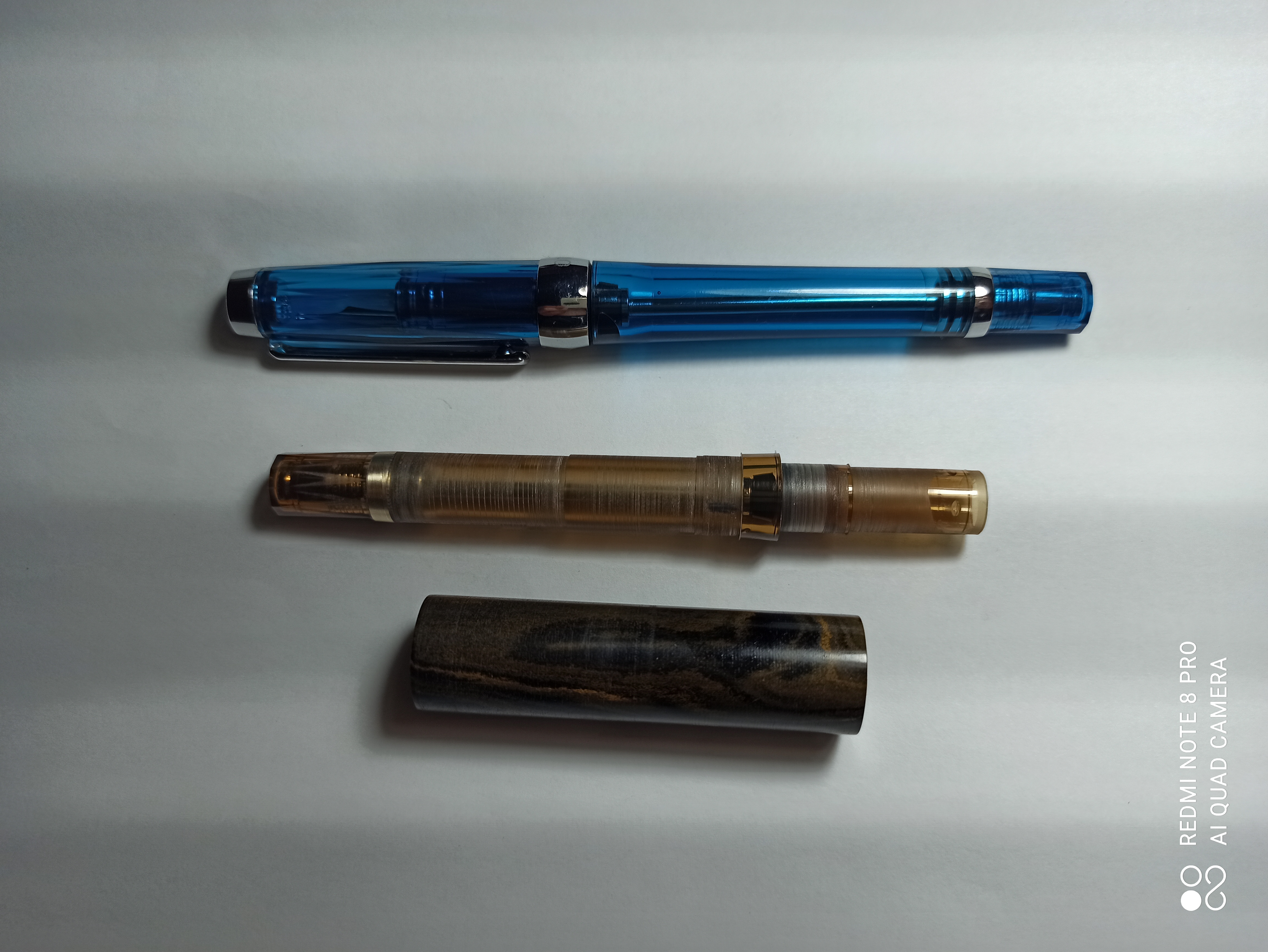 Ecco la penna finita la fillettatura e di 13 mm e ha 7 verette sottili il pennino e jinhao per mancanza di uno in oro e solo una piccola parte transparente e del originale wing sung tutto il resto l'ho fatto io