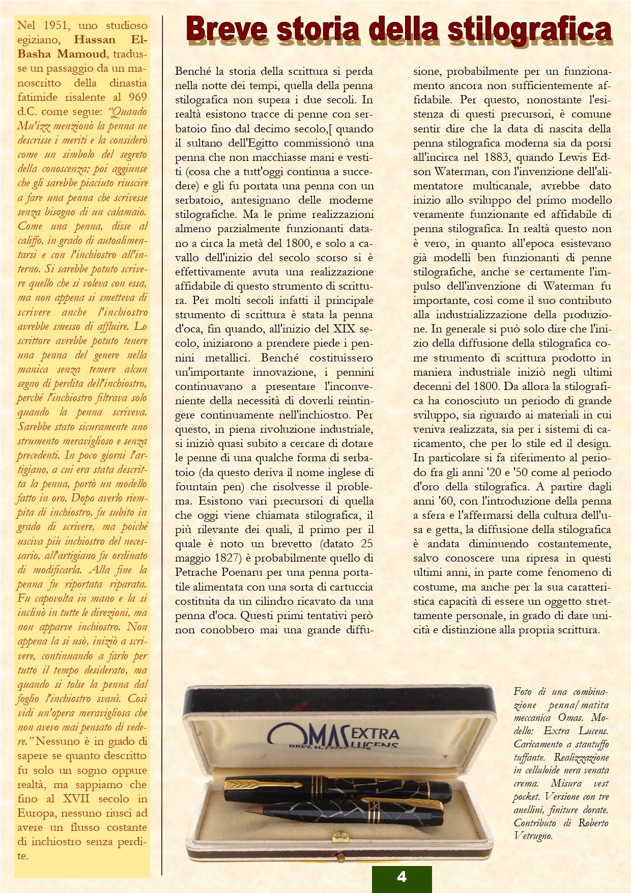 Lo stiamo assemblando, piano piano, insieme a Tribbo, dopo aver completato quello sulle Montblanc. Mi piacerebbe, pubblicare qui, in questo post, qualche pagina, settimana dopo settiman, pagina dopo pagina, fino al suo completamento graduale... In maniera da dare a tutti noi, la possibilità di correggere eventuali refusi, errori e quant'altro, sfruttando al massimo (e in questo ho esperienza) il piccolo tesoro di conoscenze che in questo forum (anno dopo anno, grazie al lavoro silenzioso di amministratori e partecipanti) si è andato a completare... Ma non ci sarà una volontà di pubblicazione, semmai una distribuzione gratuita ad amici e conoscenti di stilografica...