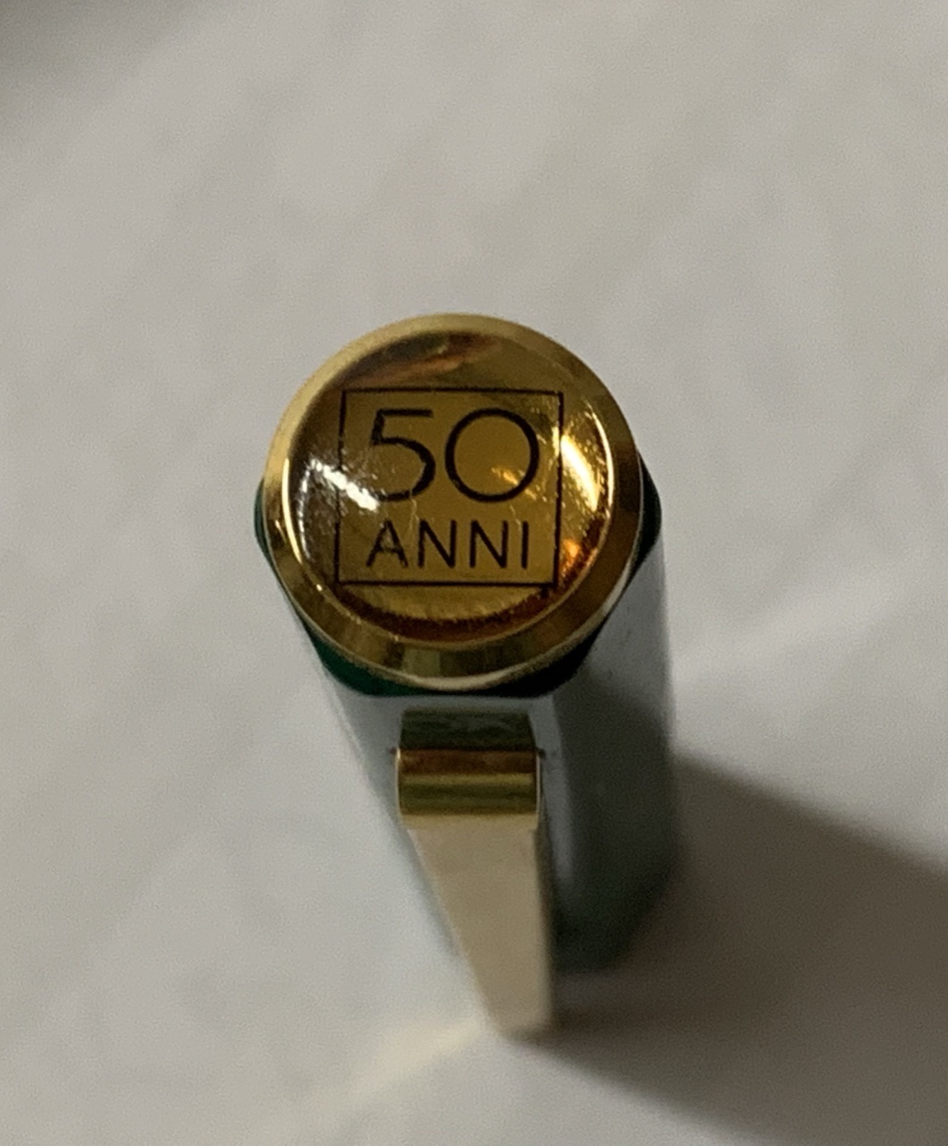 Sulla sommità del cappuccio è presente una piccola cupola trasparente che fa intravedere la scritta “50 anni”.