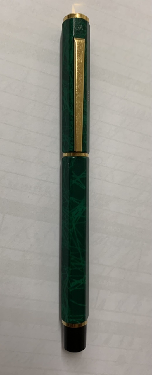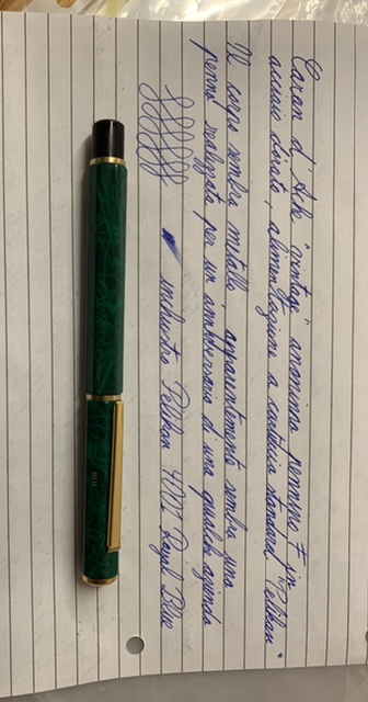La penna in questione credo sia degli anni ‘80, ma non ho alcuna informazione a riguardo, monta un pennino Fine in acciaio dorato, ma la doratura si è consumata nel tempo.