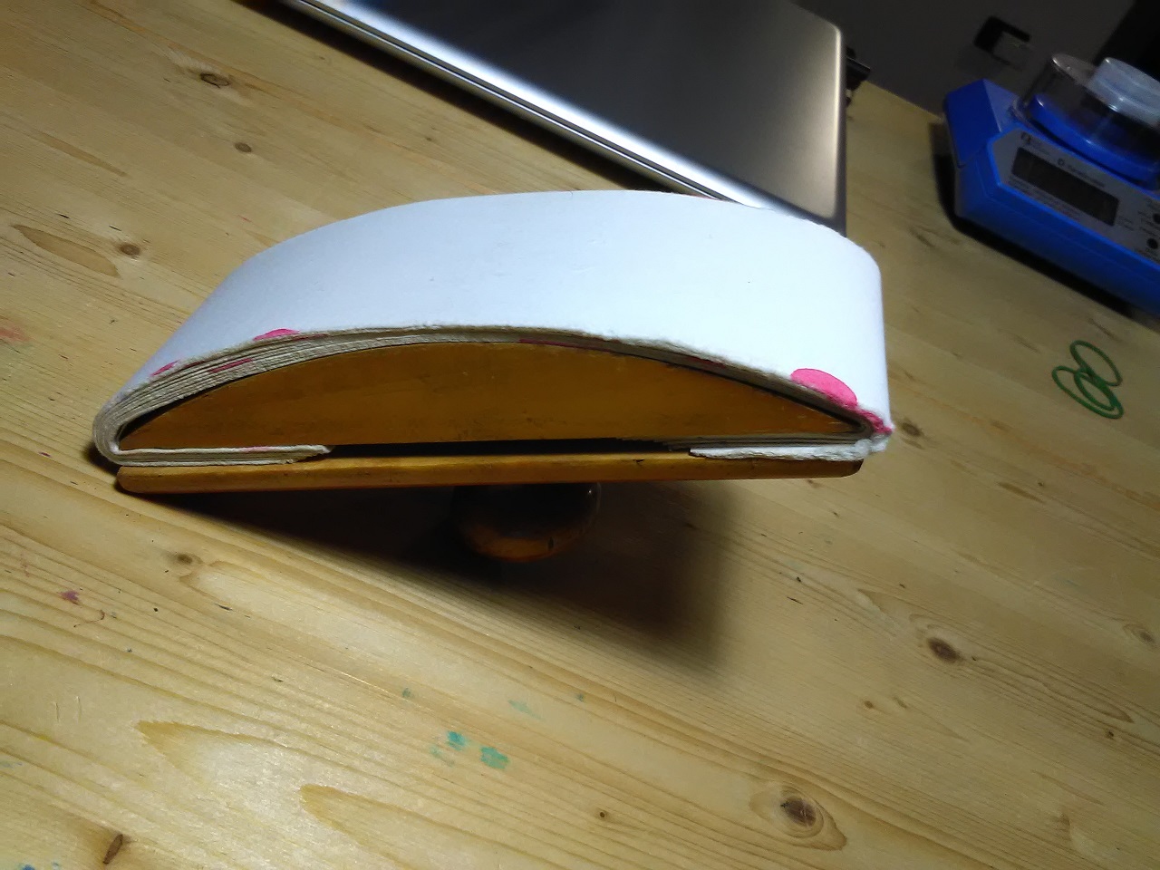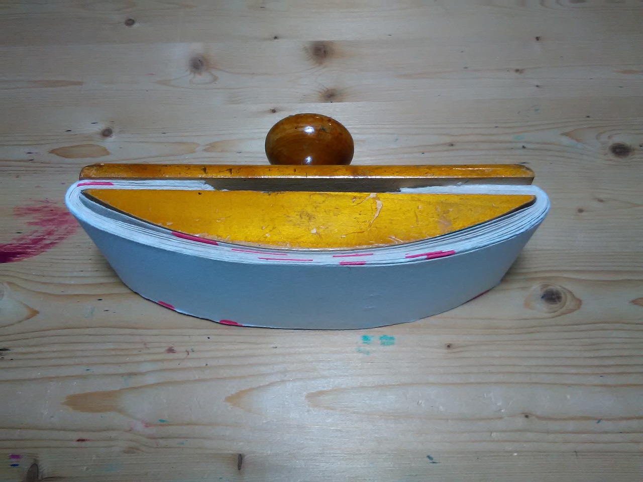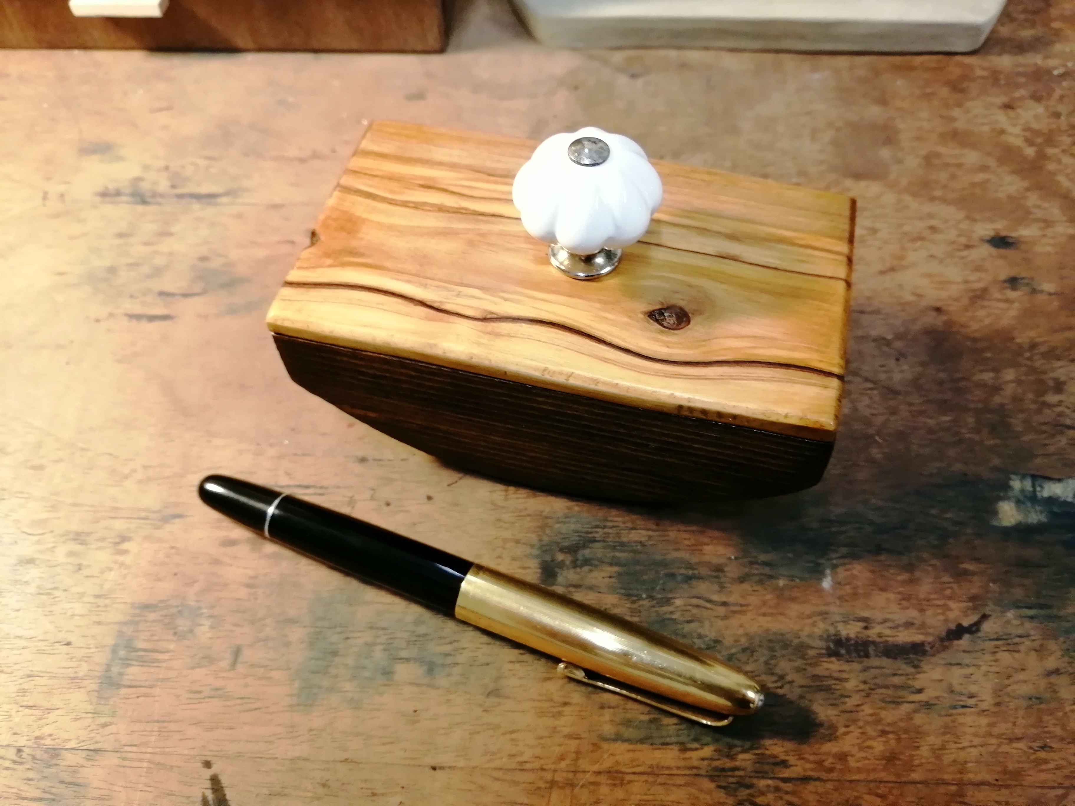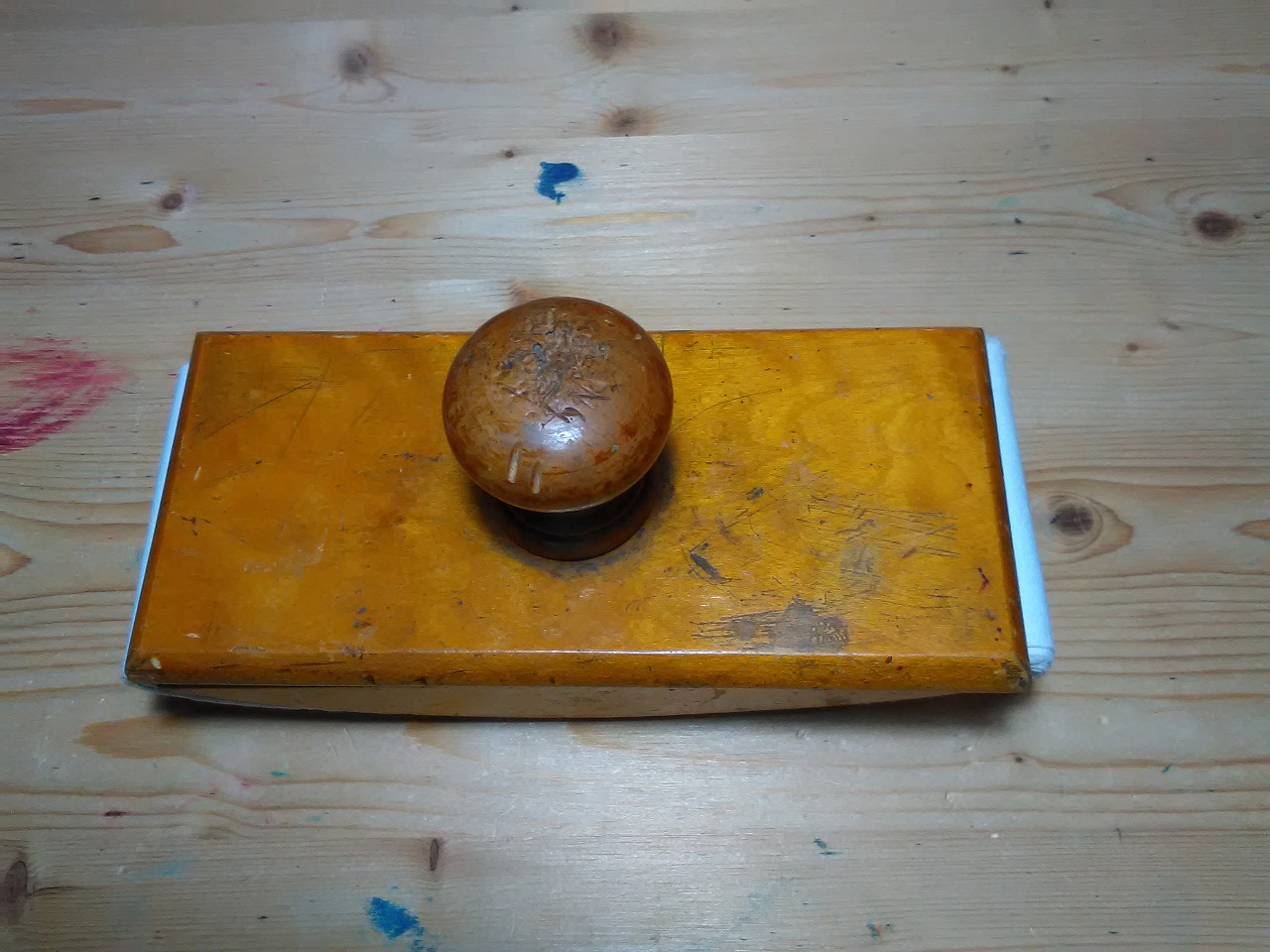 Mi sono costruito un tampone per inchiostro con dei pezzetti di scarto di ulivo e abete ed un pomello di un vecchio cassetto (allego foto).