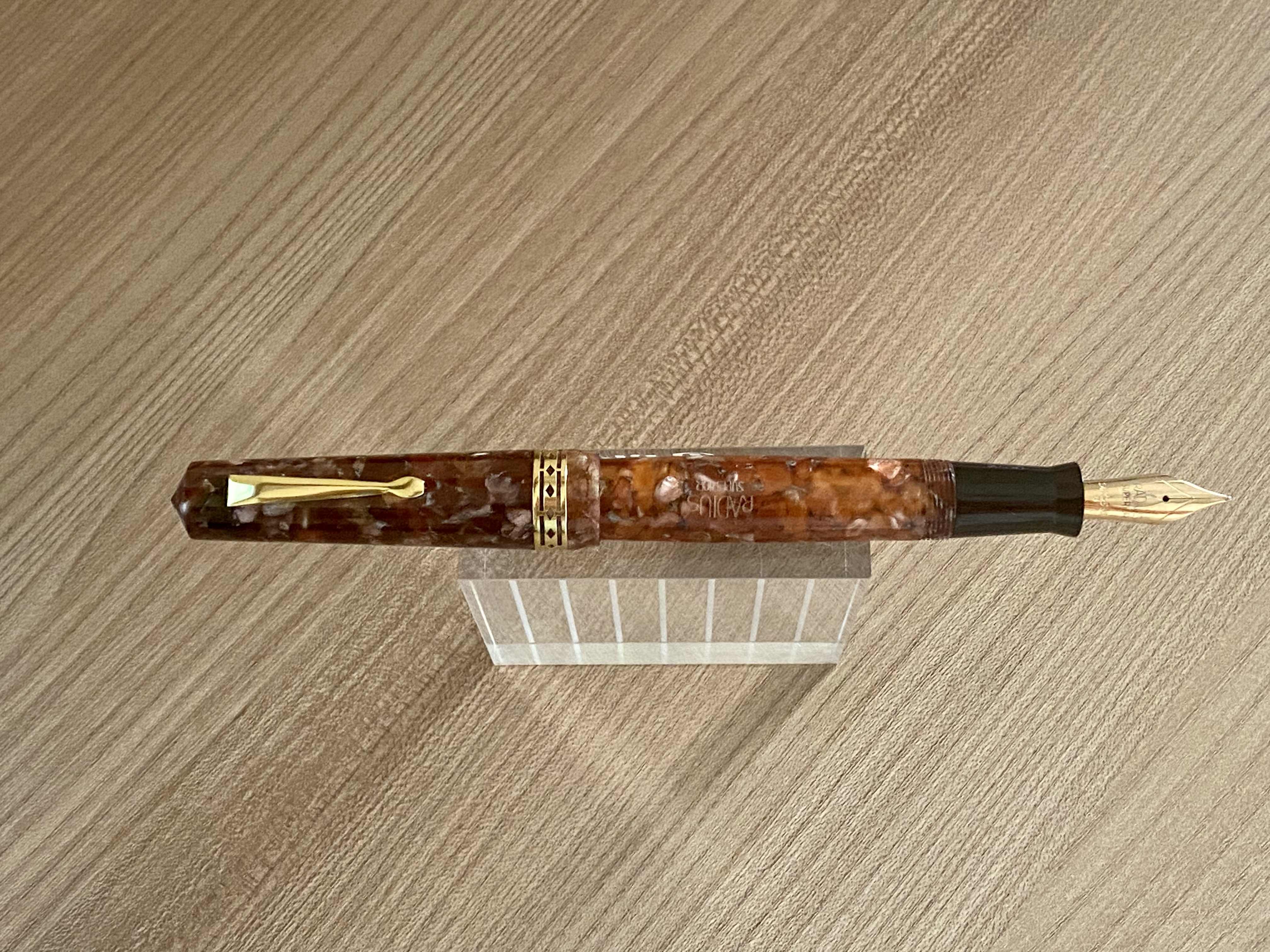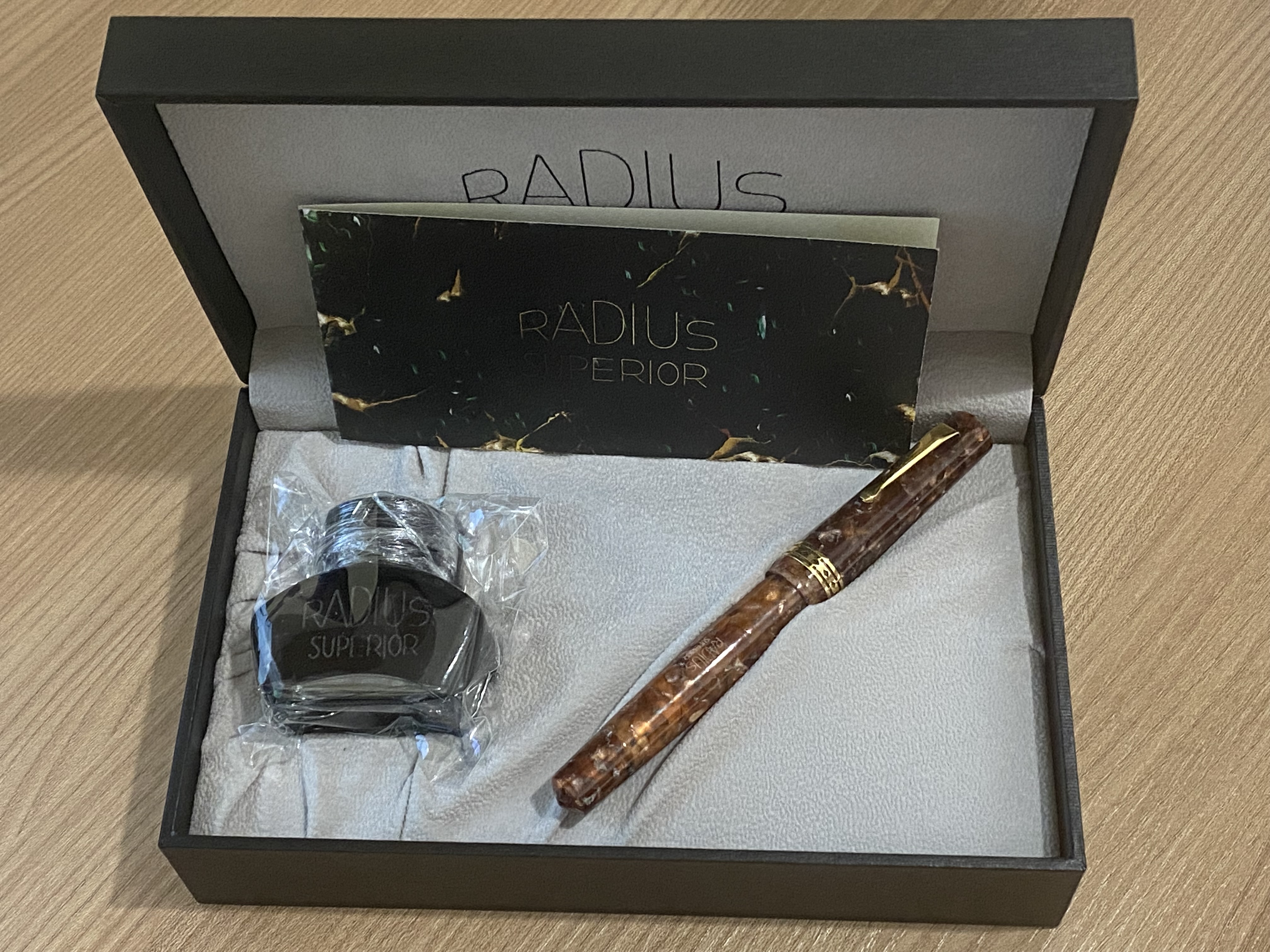 L'idea nasce da un appassionato collezionista di Radius che ha voluto ridare vita questo storico marchio. Queste nuove Radius le vidi per la prima volta al Pen Show di Napoli del gennaio 2020. l'ultimo prima dell'era pre-COVID19, ed hanno subito suscitato il mio interesse. Da allora sono passate diverse penne tra le mie mani, qualcuna anche piuttosto esclusiva, ma queste Radius erano sempre parcheggiate lì nell'area di sosta "desideri" del mio cervello. Ma galeotto fu il Pen Show di Firenze dello scorso luglio, non ne sono uscito indenne passando dal tavolino Radius presenziato da Ferruccio (il titolare del marchio), anche perché la sua passione è davvero contagiosa; è stato meraviglioso vederlo aggirarsi tra i tavolini a caccia di Radius per la sua collezione.