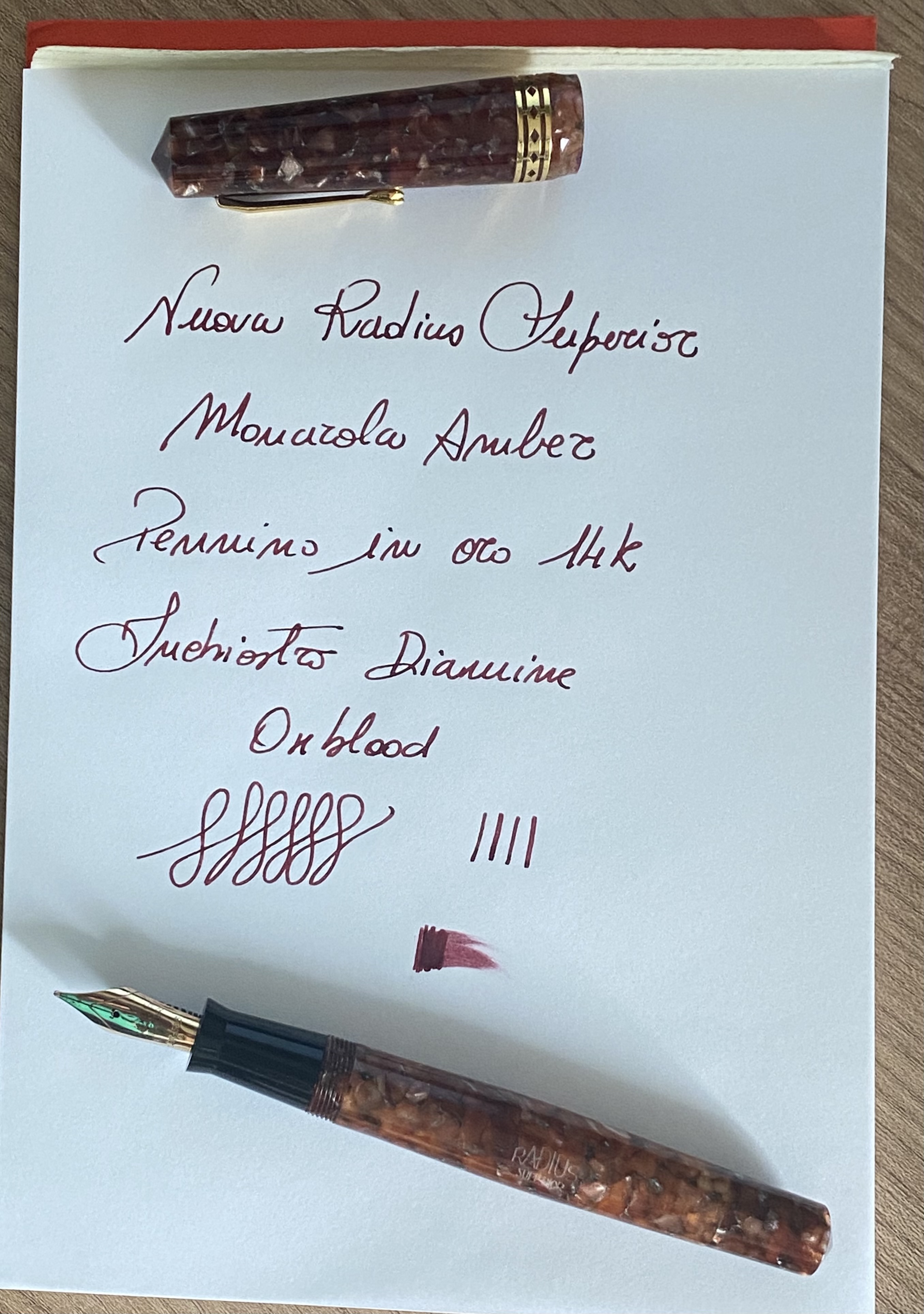 Visto anche io i video in cui decanta le qualità calligrafiche di una Radius vintage. Su questa moderna ci si deve accontentare di un pennino che scrive molto bene e basta, niente velleità calligrafiche.
