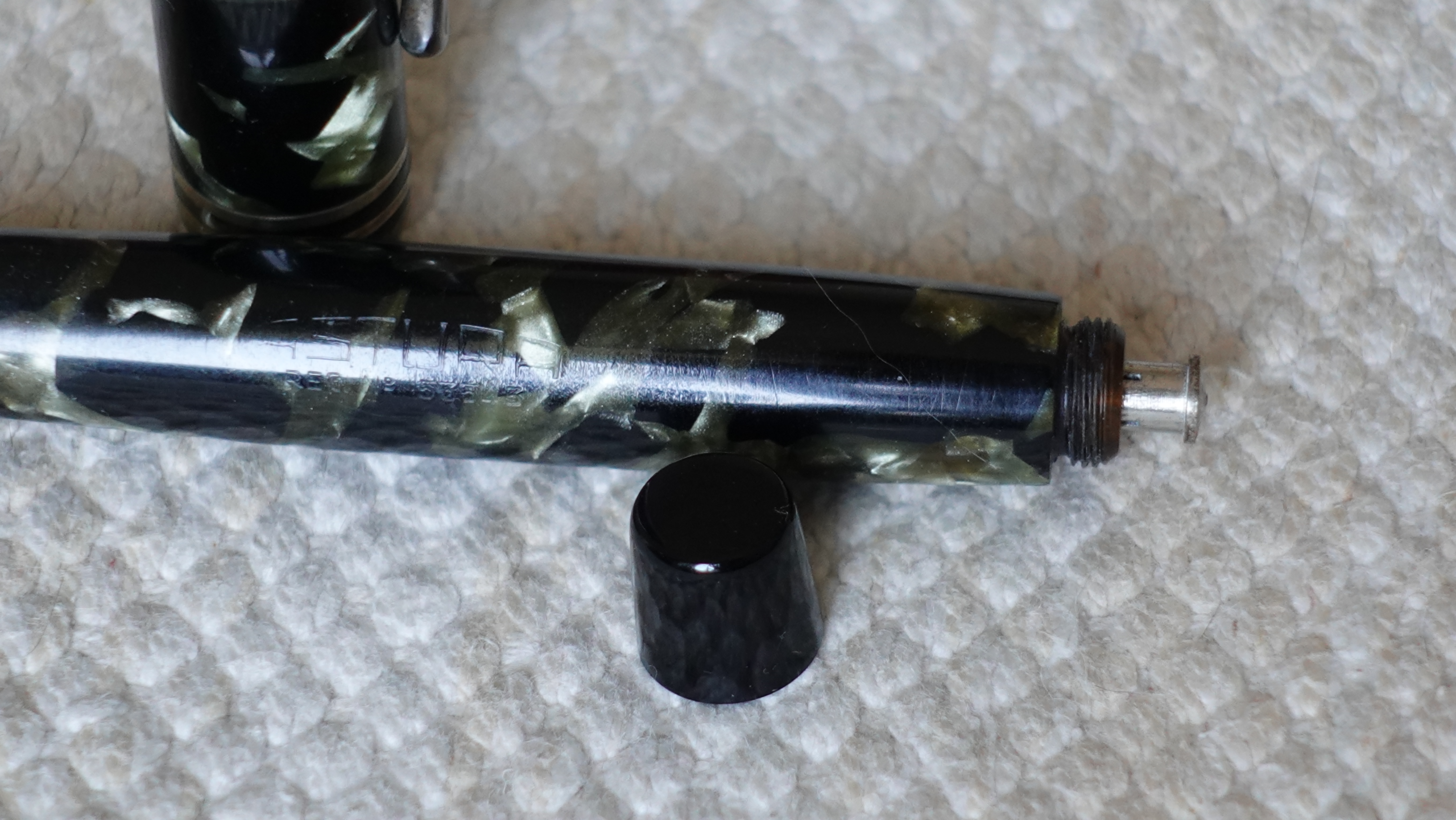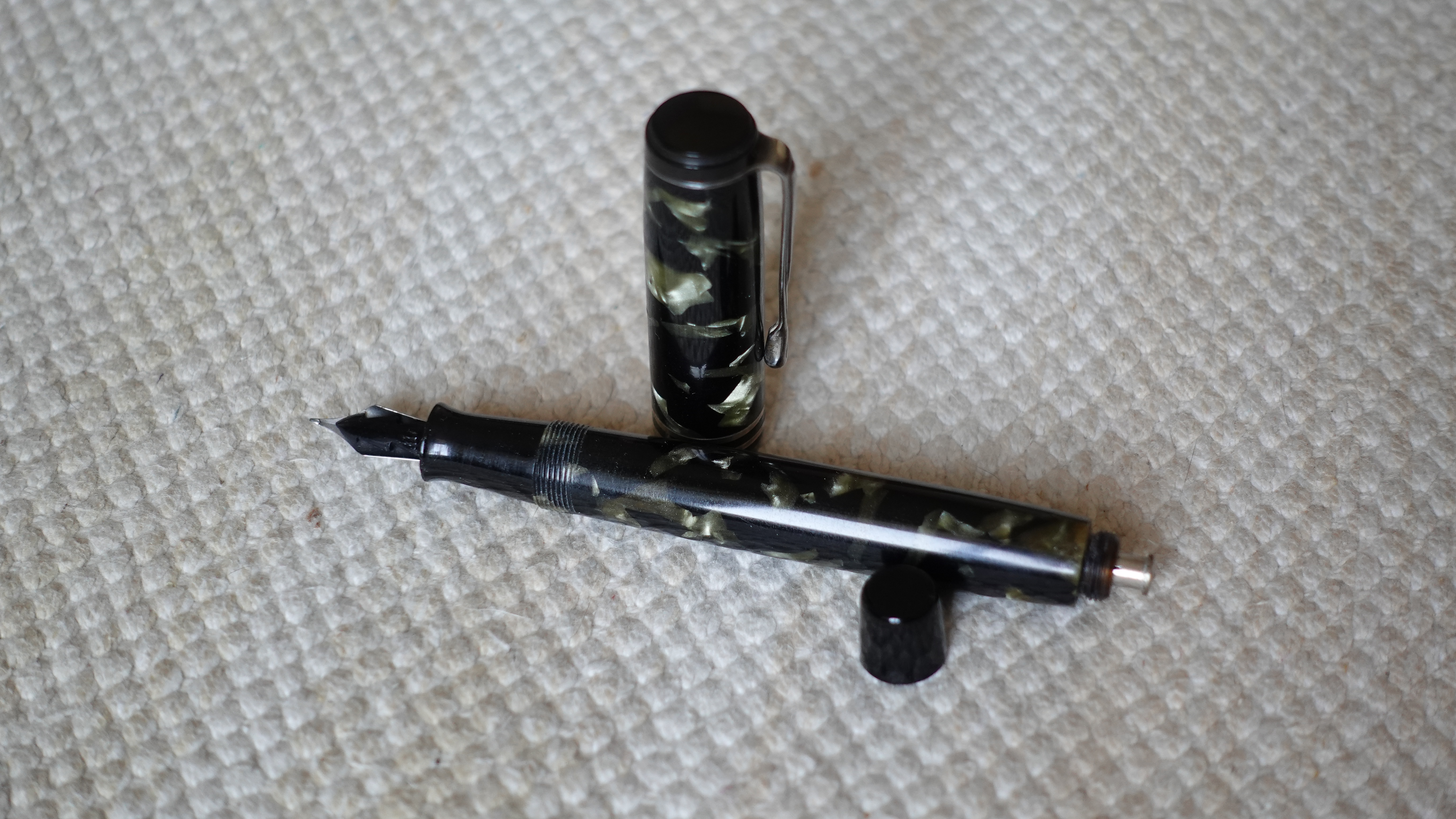 Soluzione brillante. Non stride con la forma della stilografica. Complimenti per le capacità manuali. È partito da un pezzo di ebanite modellata al tornio?
