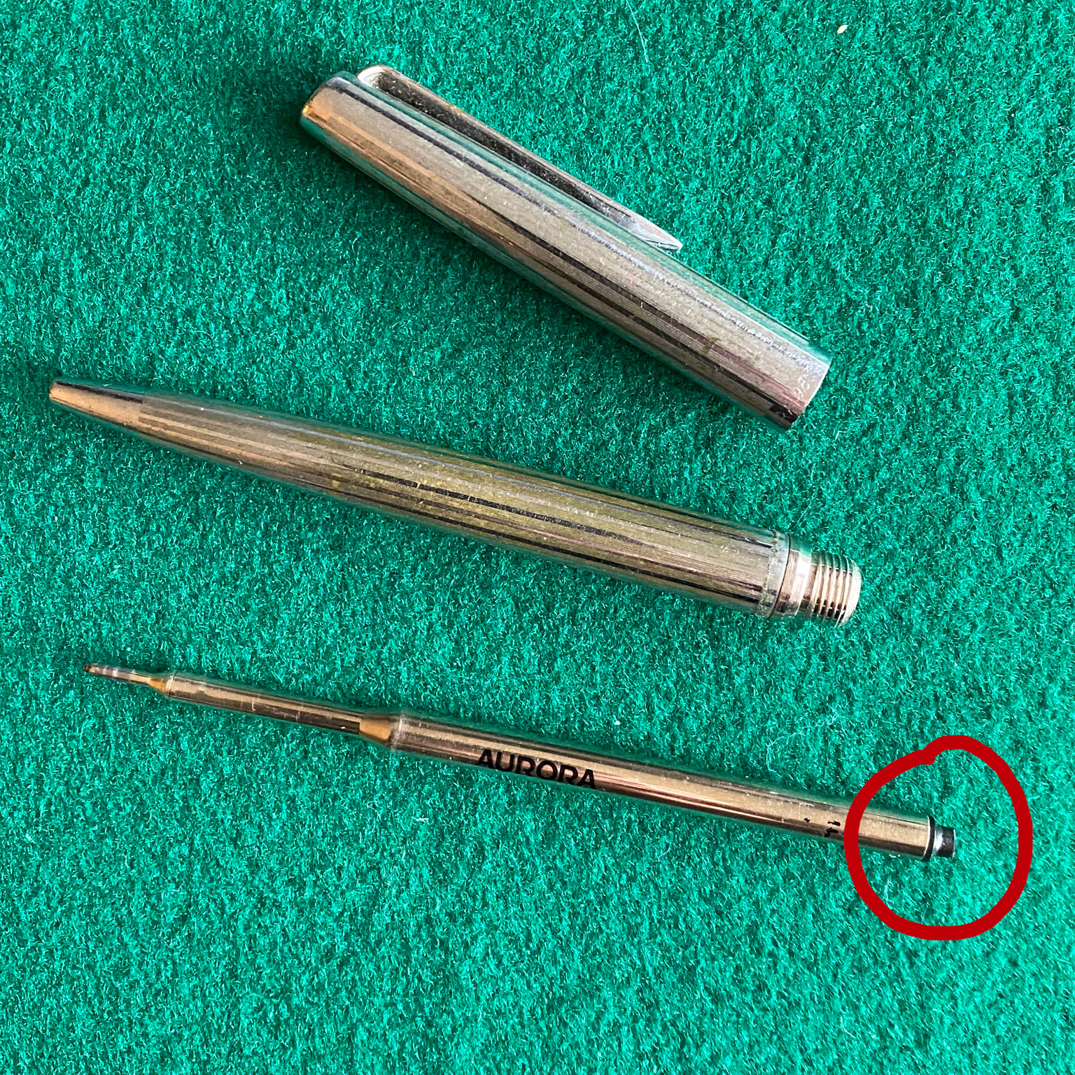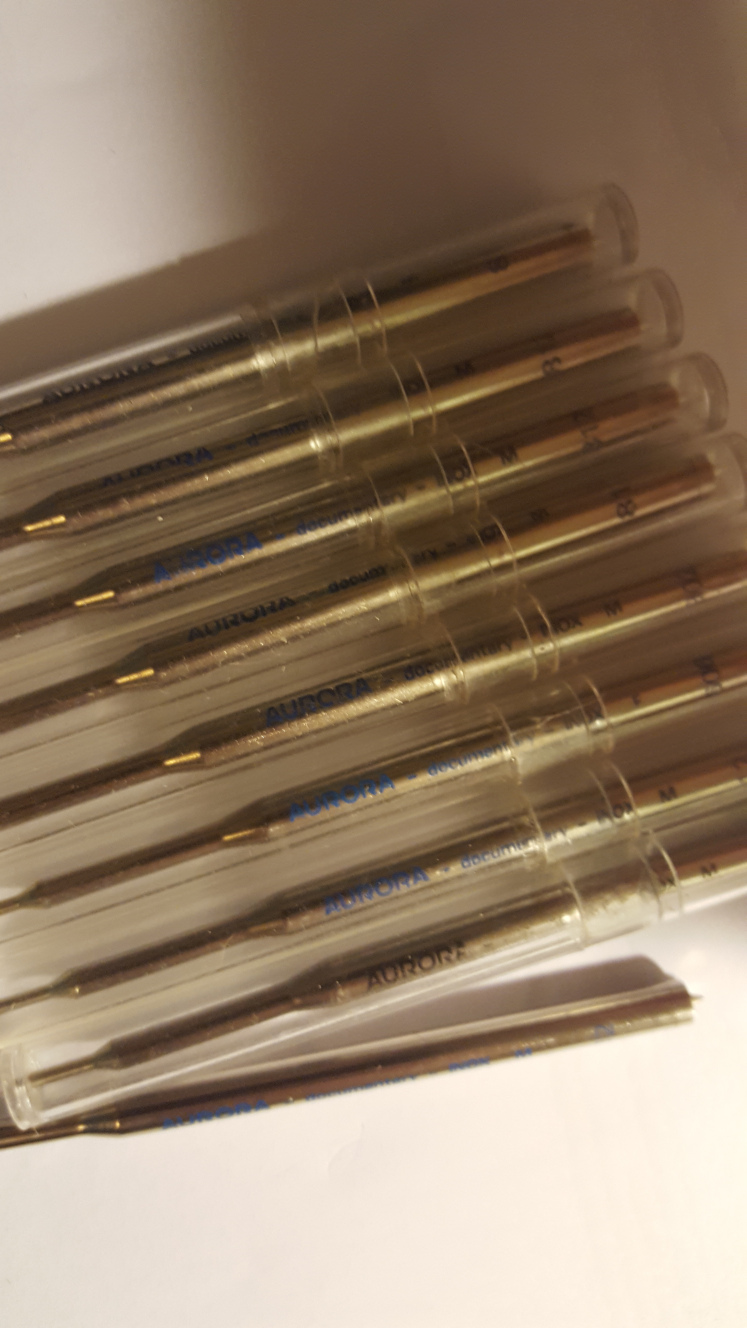Il mio fornitore mi ha datto che il refill Parker scrive peggio dell’ Aurora “nuovo” quindi ne ha preso uno e lo ha accorciato con una trochesina.