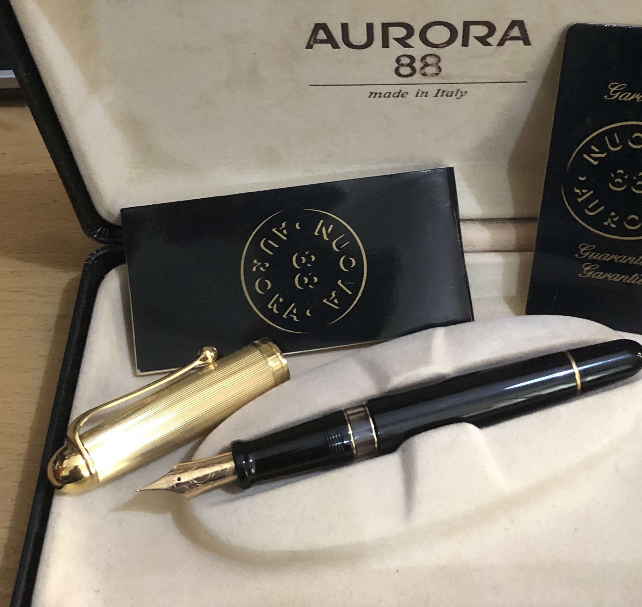 Bellissima e molto elegante per me la mia Aurora 88 Big con cappuccio placcato oro a righine e pennino a rebbi lunghi…. Una delle penne che non mi stanco mai di guardare