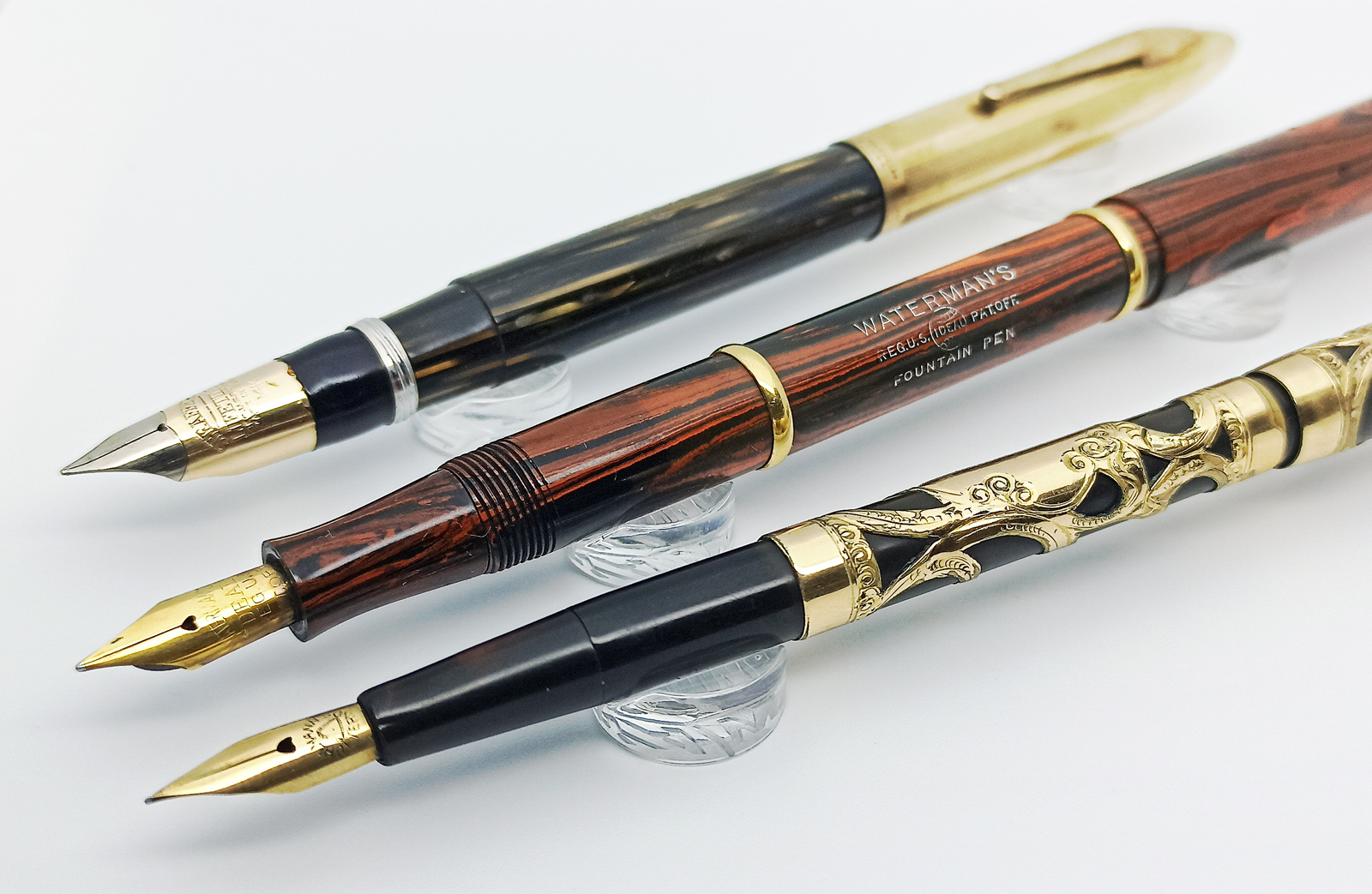 Vedo che avete citato tutte penne di colore nero, ma se si pensa ad una penna elegante ma sobria, la cui forma non finirà mai di piacere, la cui linea rimane immutata sia con cappuccio calza che senza, non si può non pensare alla Waterman Edson. Guardate, ad esempio, come il disegno della clip si "sposa" con la forma del pennino.