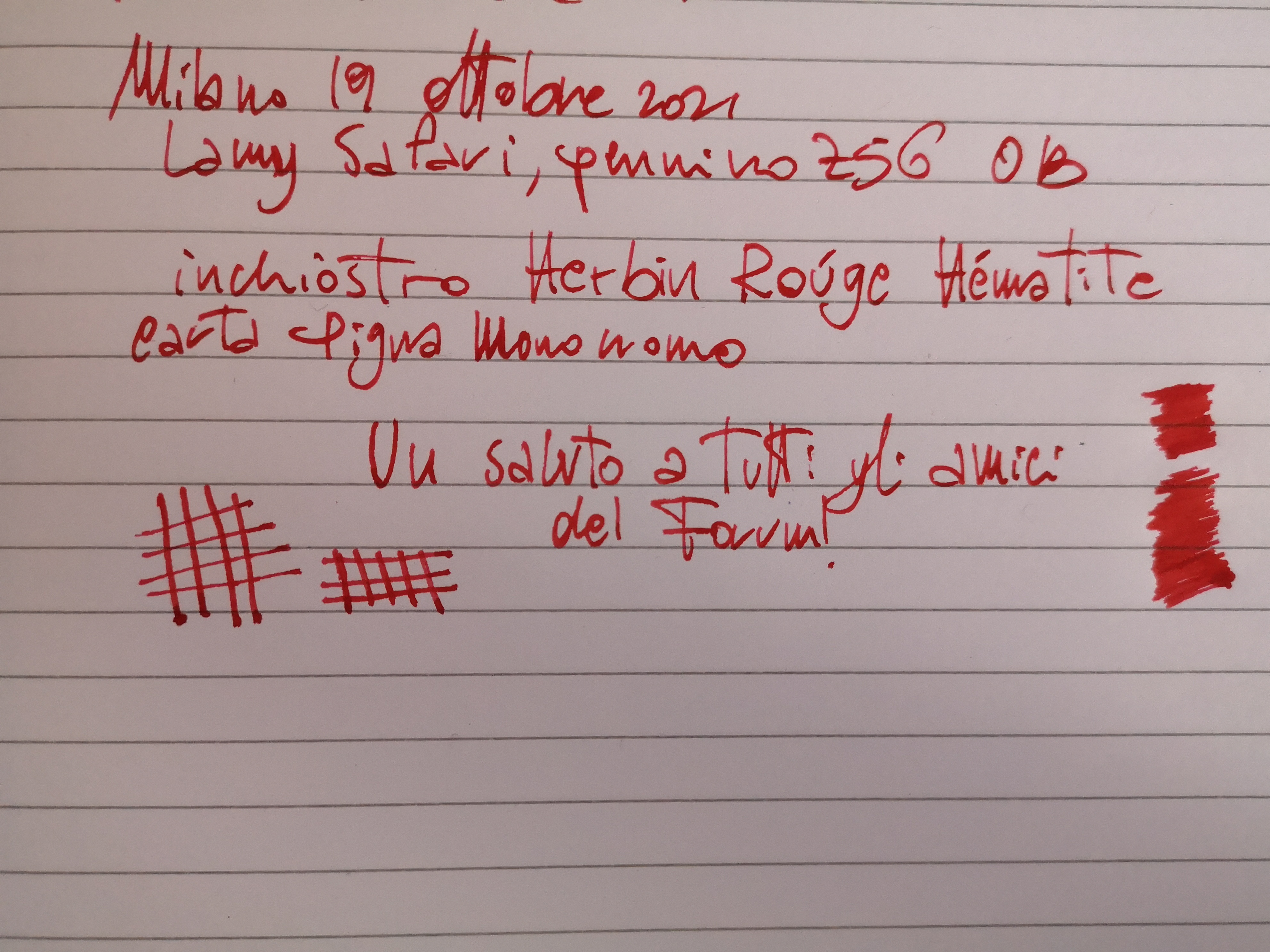 Siccome i proverbi di saggezza popolare sono quasi sempre veri, e di seguito si legge la dimostrazione che chi disprezza, compra. Prima dell'estate ho preso per curiosità l'inchiostro di Herbine Rouge Hematite e mi sono accorta che era molto difficile da lavare, Herbin stesso consiglia di non lasciarlo troppo a lungo su penne che non sono utilizzate spesso. Io stessa, dopo averlo lasciato troppo a lungo su una penna a pistone e averci messo giorni a lavarla, ho riposto la boccetta dicendomi: MAI PIU'!