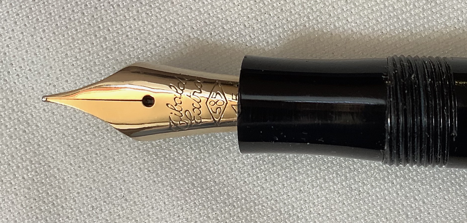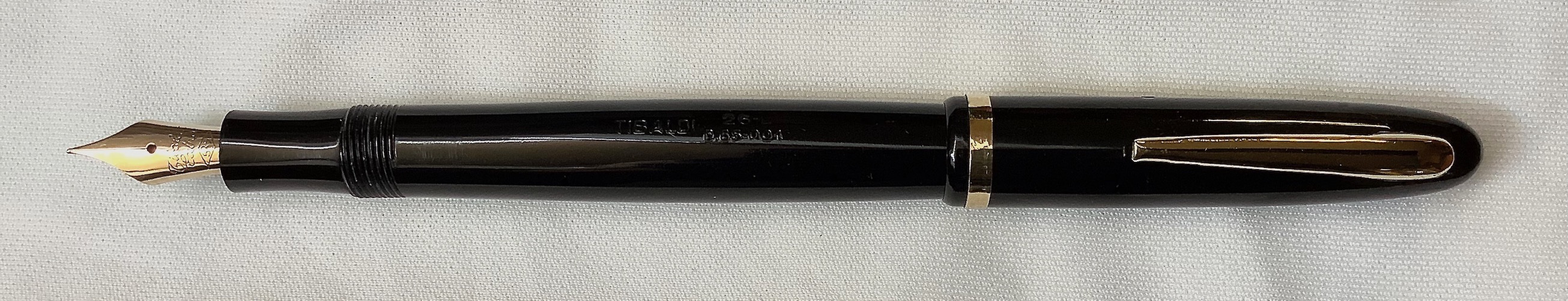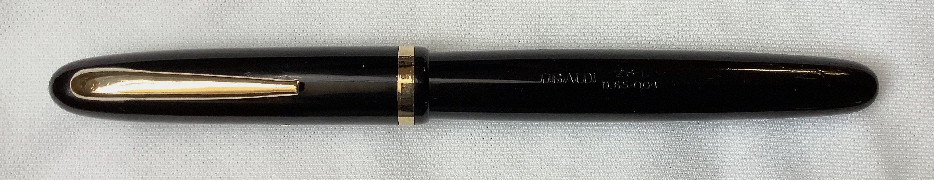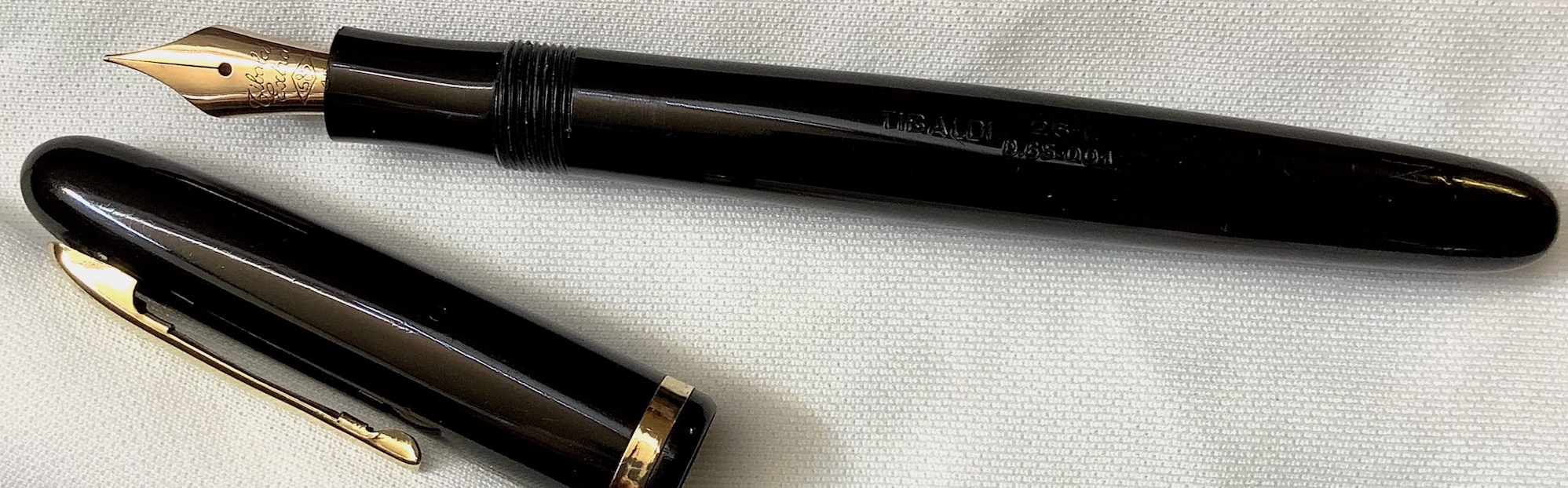Riporto questa 26-L D.65-001 in celluloide nera, caricamento a stantuffo e pennino scoperto.
