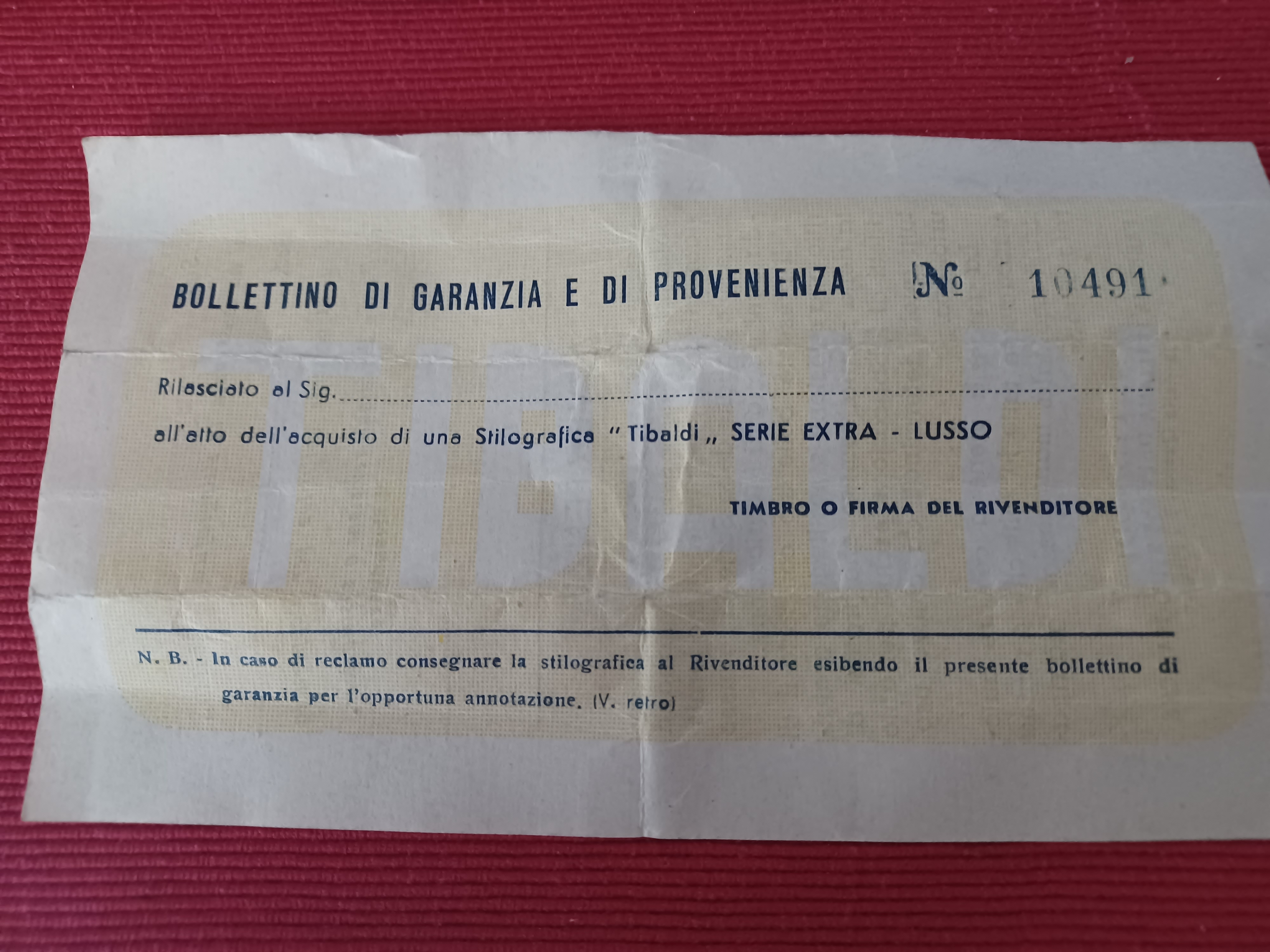 Di nuovo grazie alle indicazioni di muristenes (ed al ritrovamento dello stesso numero su un esemplare della penna) è emersa una numerazione completamente diversa, che continua a seguire lo schema del D-qualcosa, ma non più 4 cifre, e senza una apparente, almeno per me, possibile estensione delle precedenti. Sul modello Tibaldi 26-L (una versione più grande della 20-L) infatti si trova la numerazione D-65-001.