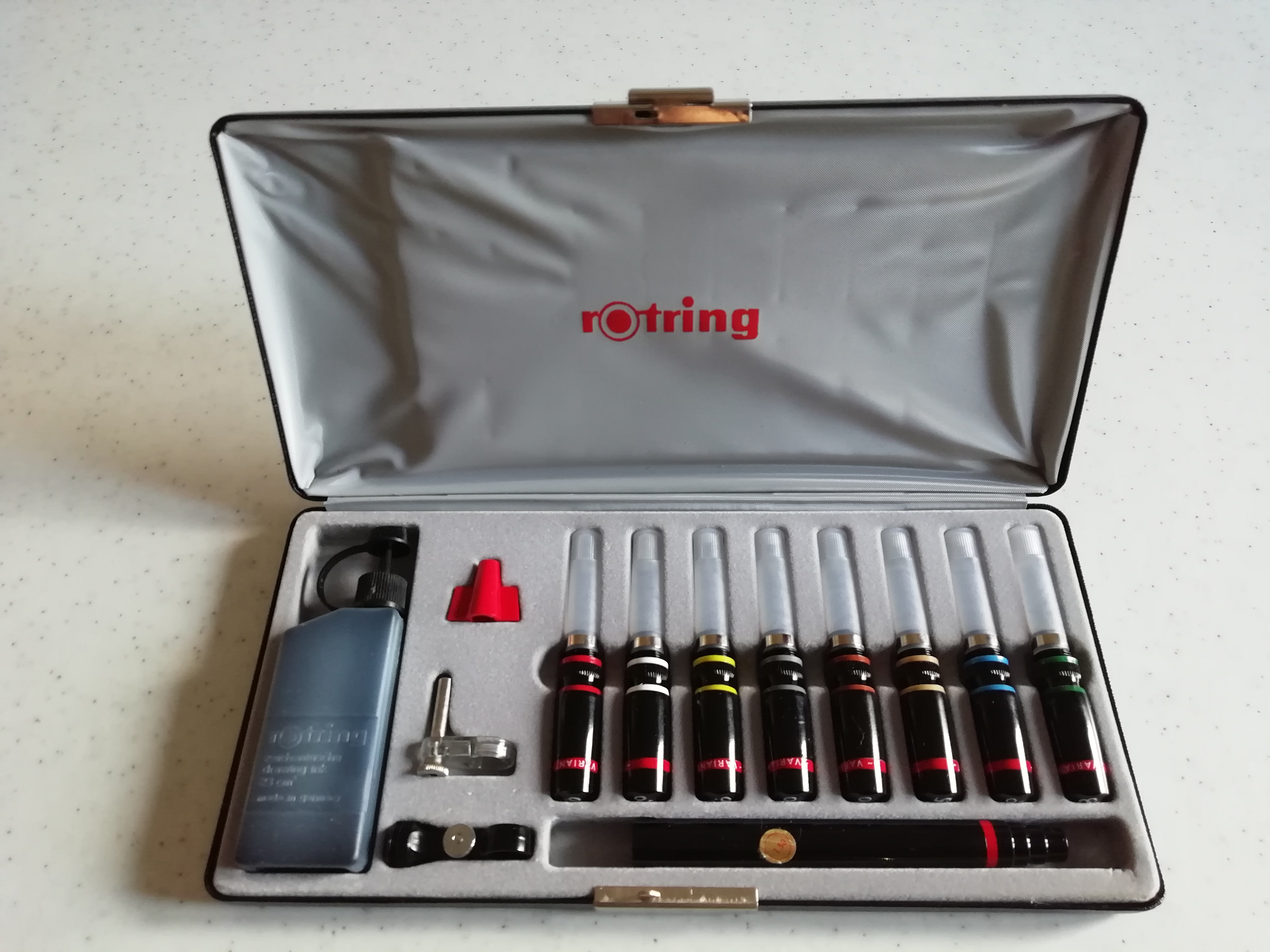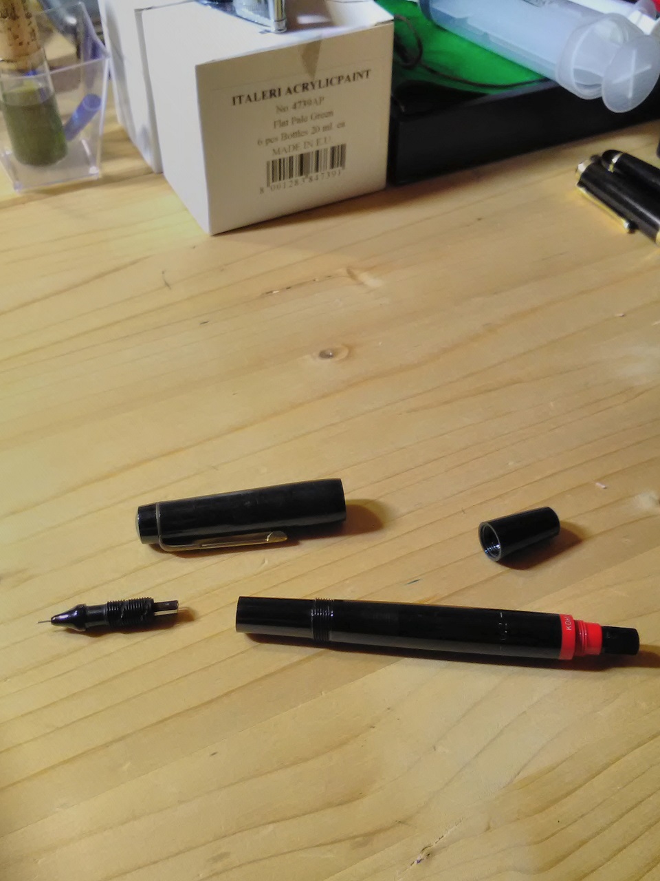 è un rapido a stantuffo tipo stilografica, è stato il primo e scelsi il pennino 0,20, gioia e dolore. Tuttora è funzionante, notare il fermo metallico del pennino, in quelli odierni è di plastica filettato.