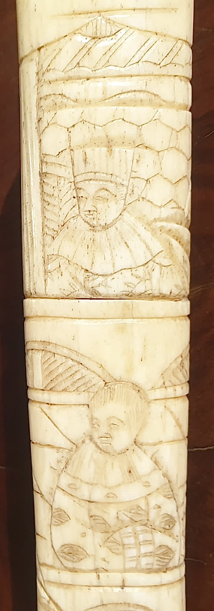 Raro, antico completo scrittorio da cintura (qalamdan, penner, yatate?) orientale in osso con calamaio in rame premuto dal basso con molla. H cm 27,4. Nelle ultime due foto, particolari delle iscrizioni su porta pennelli/calami e porta calamaio. Pennelli non coevi.