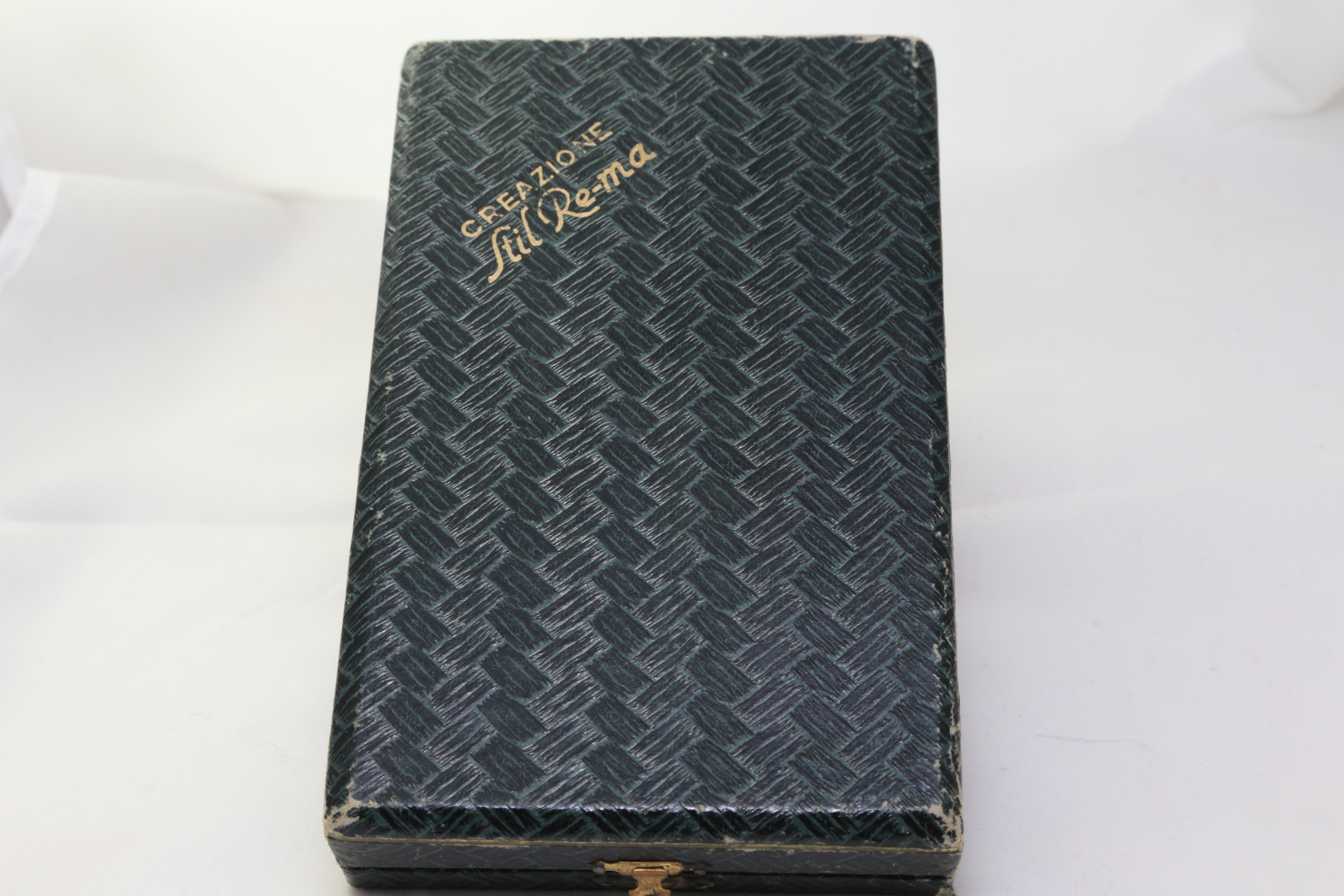 Grazie, anche questa interessantissima e,,forse, un pò più giovane (dalla stampa del logo sulla seta dell'astuccio di Renato Marrucci).