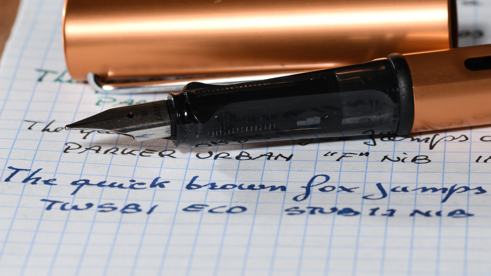 Come prestazioni sembra scrivere bene (ancora non l'ho provato a dovere, comunque: l'ho appena inchiostrata con ink TWSBI nero, che è piuttosto fluido, il tratto è corposo (come atteso)) ma il pennino tende a sporcarsi un po' da solo (piccola trafilatura tra i rebbi, ma pure questo mi pare di aver visto che sia diffuso, guardando un po' di filmati di recensioni).