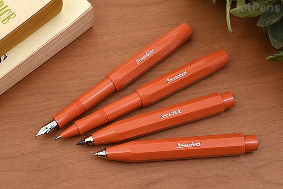 Una bella Kaweco Sport (Skyline) arancione con pennino F o M (il pennino andrebbe provato prima). Se trovi, come è successo a me, un fine che scrive un filo più abbondante del dovuto, secondo me valorizzi al massimo l'inchiostro (questo ha davvero una tonalità bellissima, avevo deciso per il 2022 di darmi una regolata con gli acquisti compulsivi, ma già al giorno 1 sono in difficoltà...)